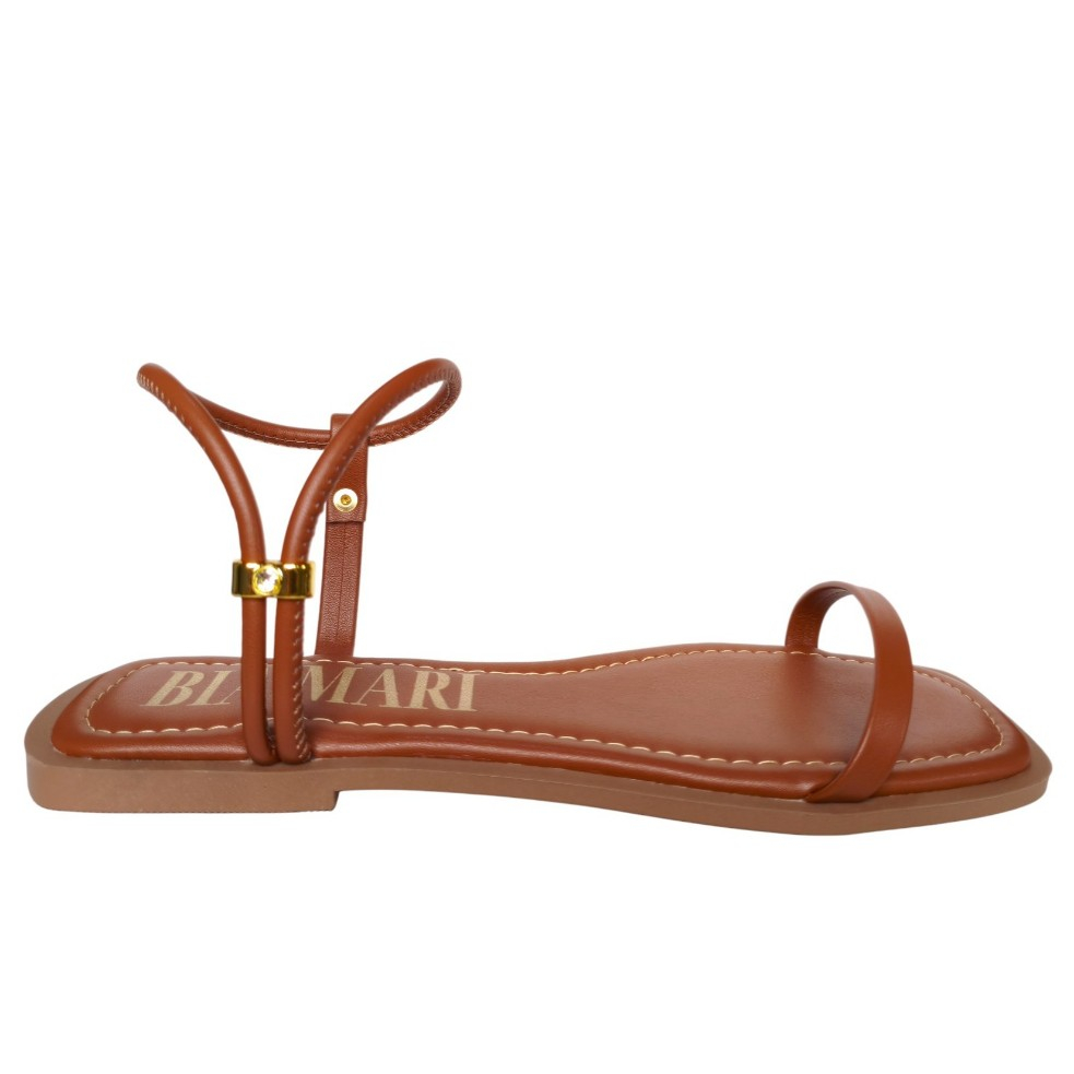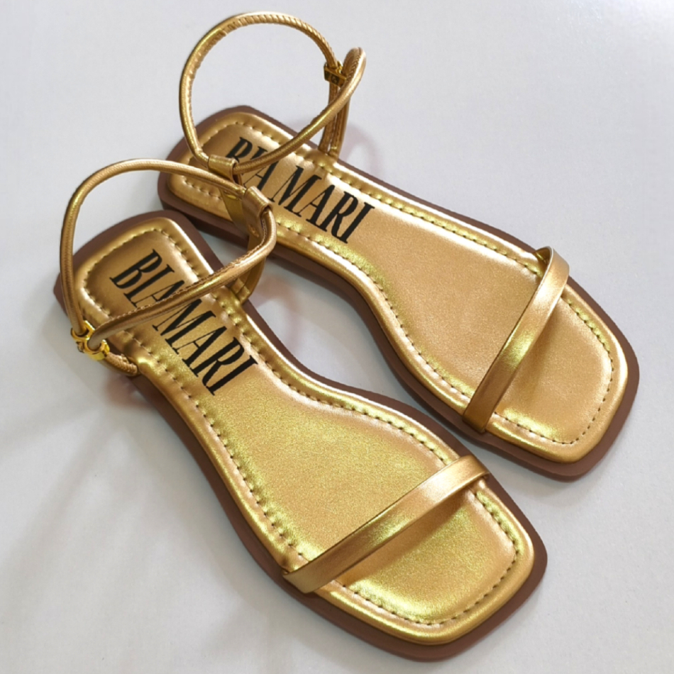 Sandália Feminina Rasteira Básica e Delicada Traseiro Regulável e Bico Quadrado