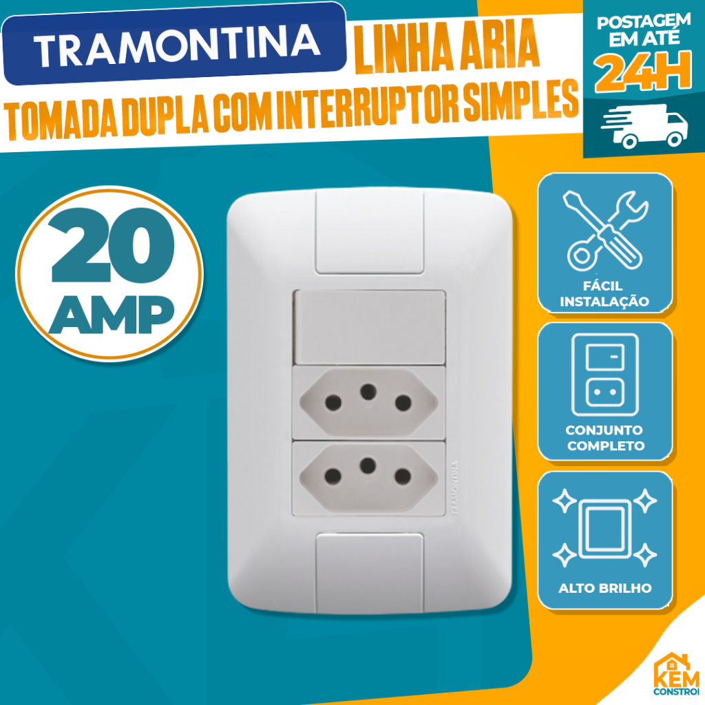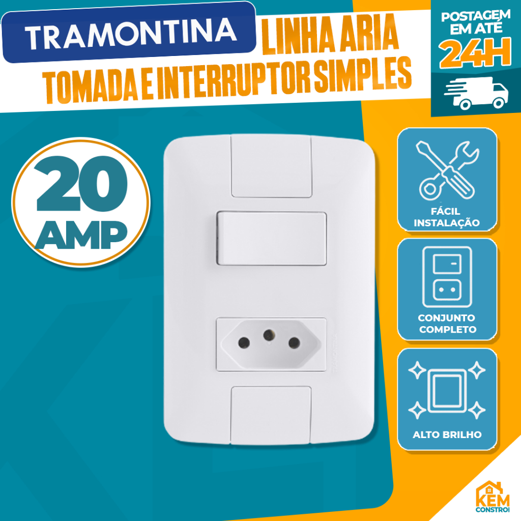 Tomadas e Interruptores Tramontina Aria Linha Completa de Módulo e Placa Branco e Modular