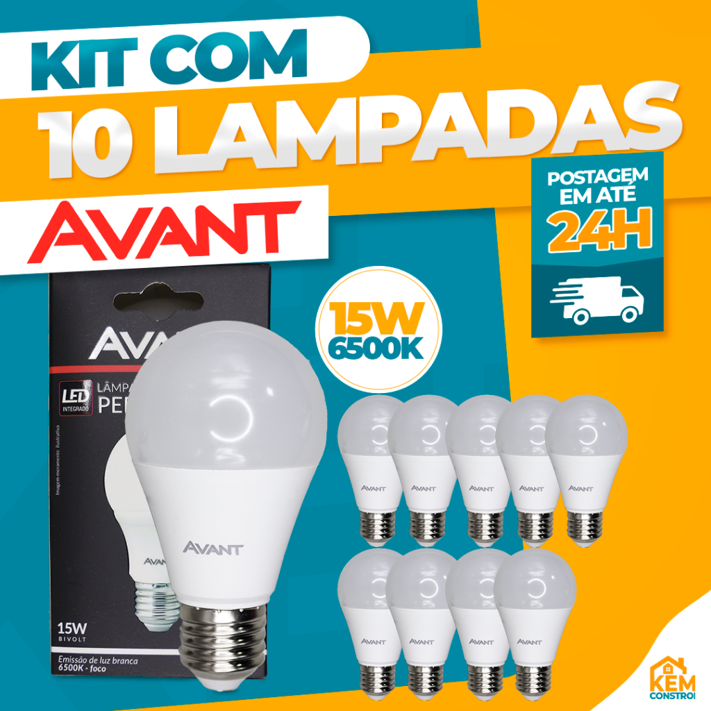 Kit Lâmpada LED E-27 15W 6500K Bivolt Casa Comércio Igreja Loja Luz Fria Avant