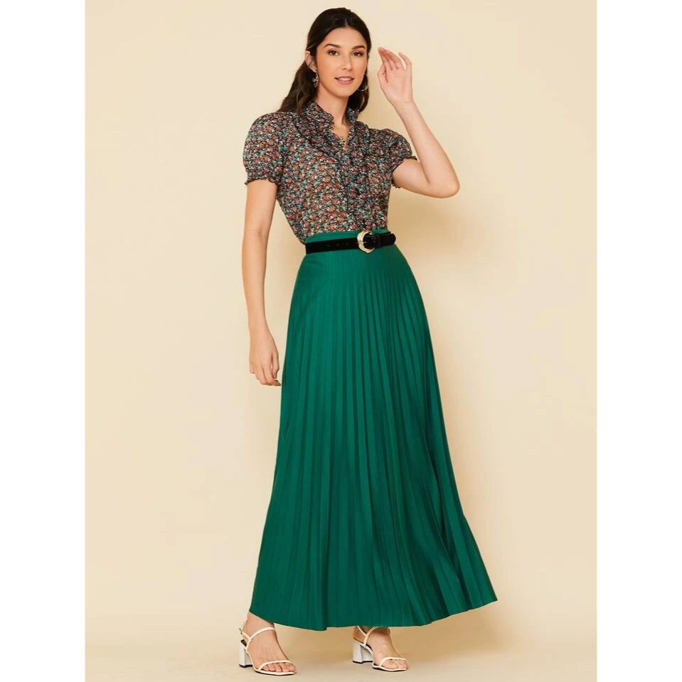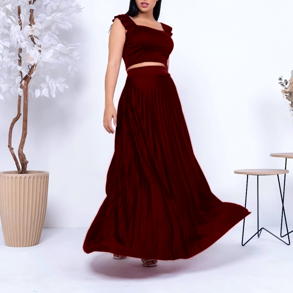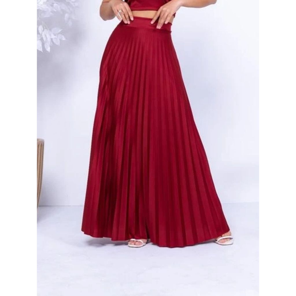 Saia Longa Plissada Feminina Evangelica Cintura Alta Gode Rodada Forro Luxo Festa e dia a dia