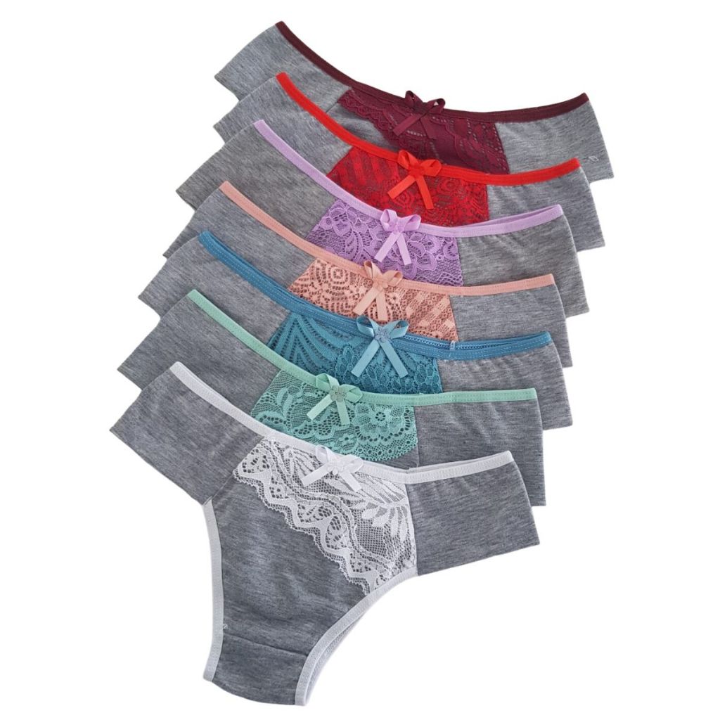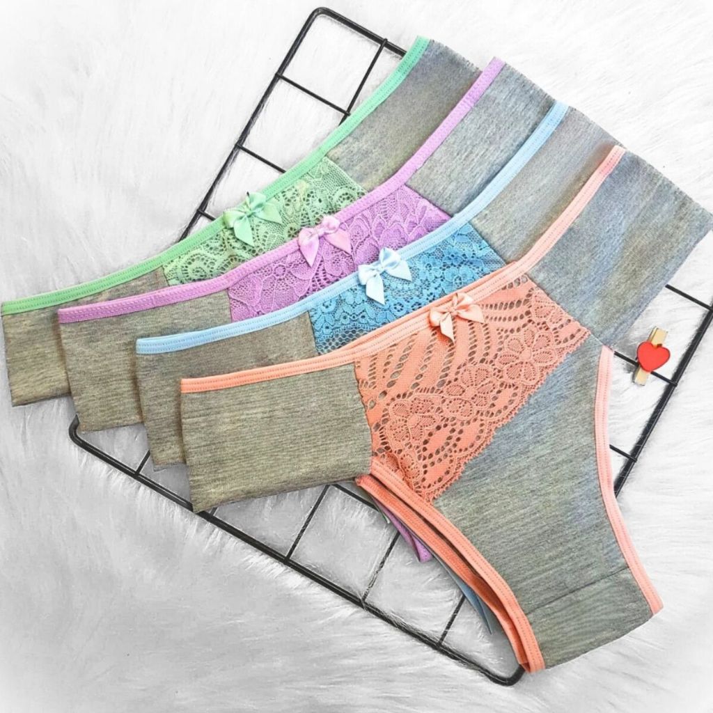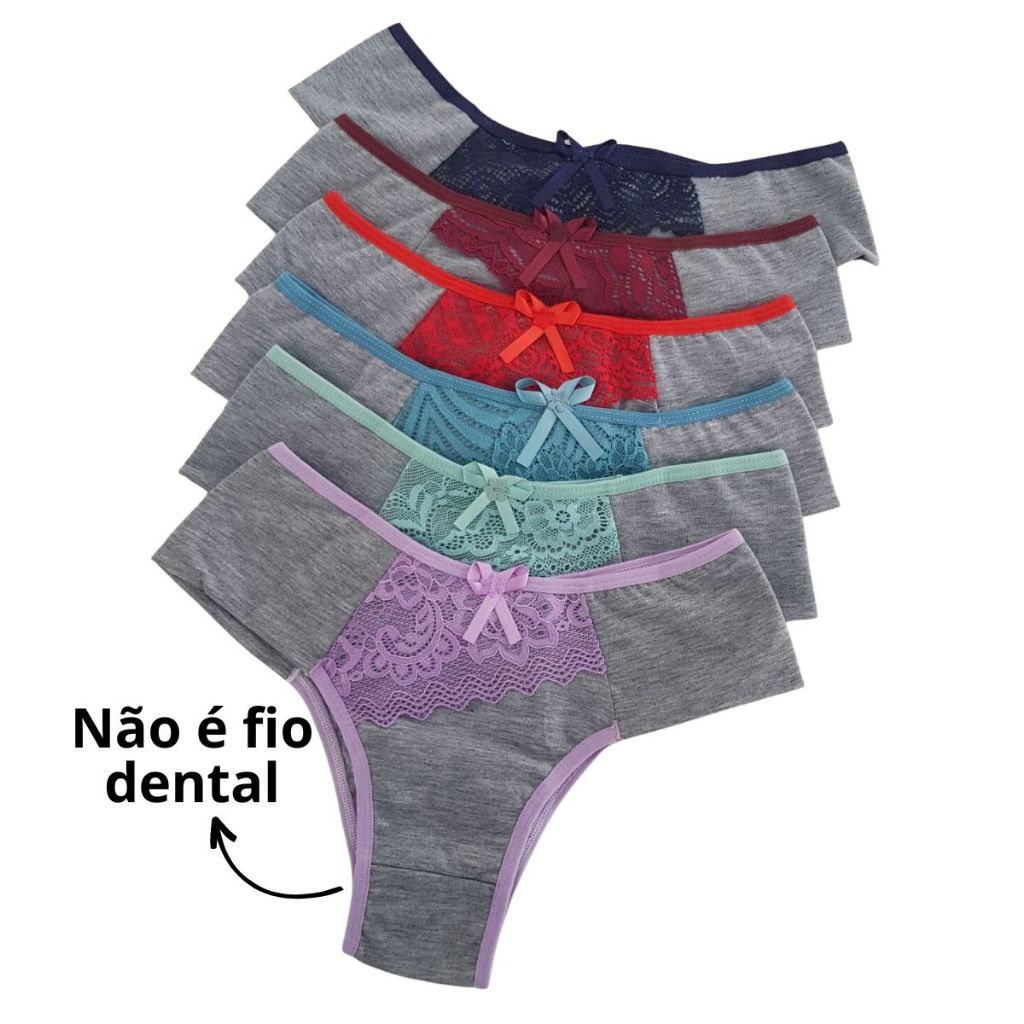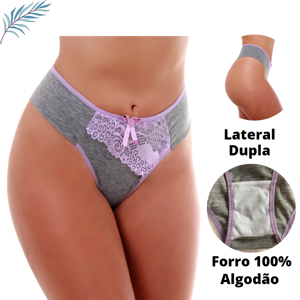 Kit 5 Calcinhas Mescla Microfibra Cintura Alta Renda Delicada Reforçada - Lara