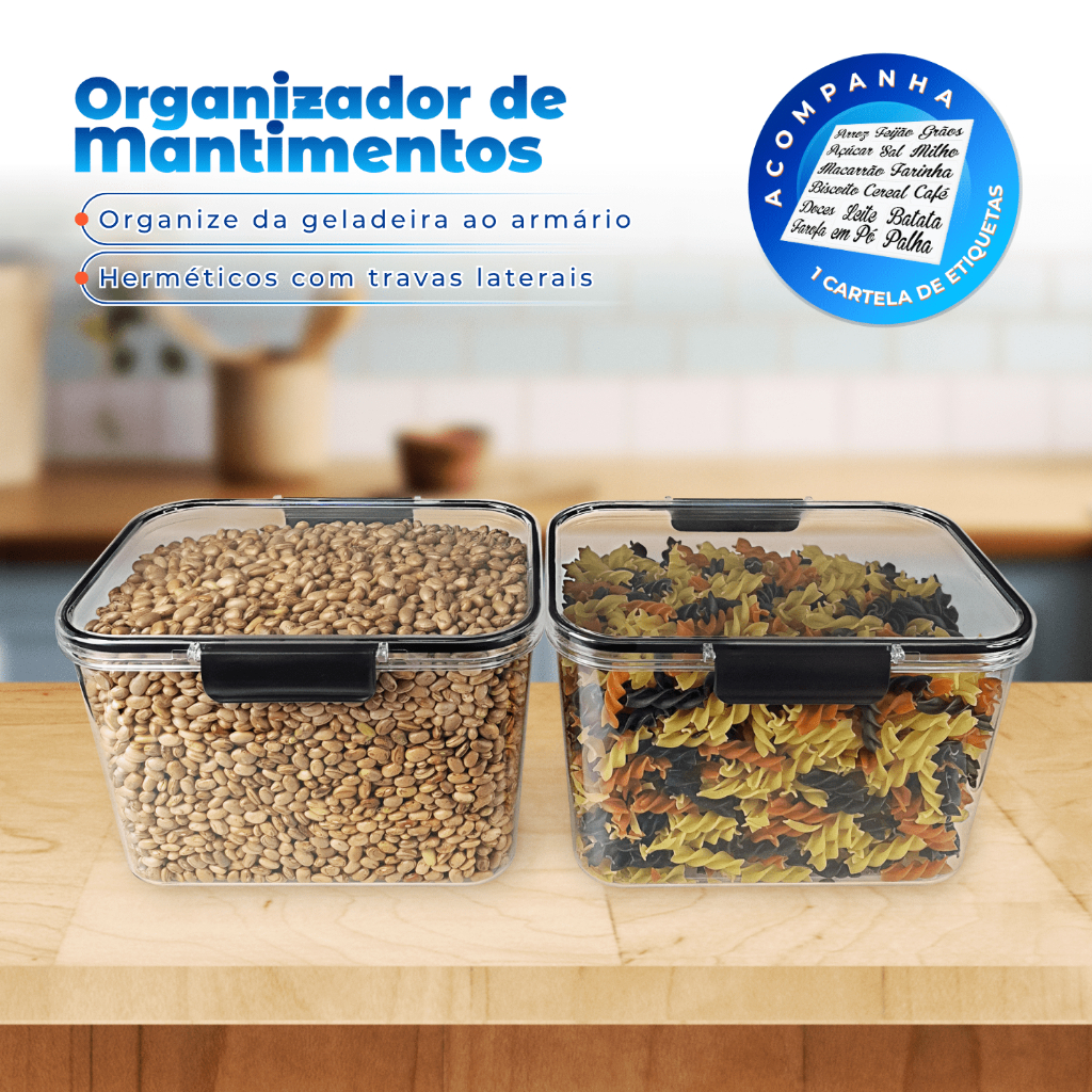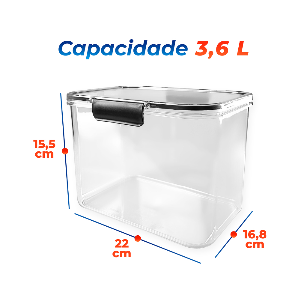 Kit 2 Hermético com Trava 3600ml Organizador Armário Lavanderia Geladeira