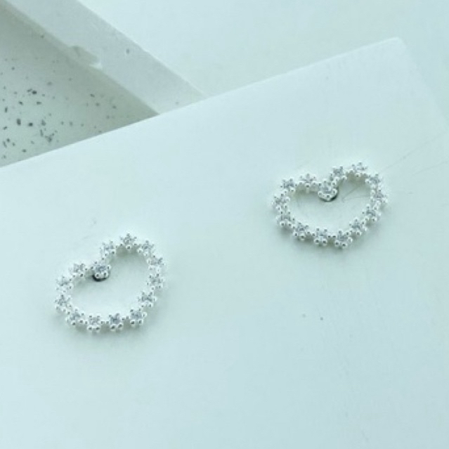 Brinco coração cravejado com pedra de zircônia em prata 925 legítimo