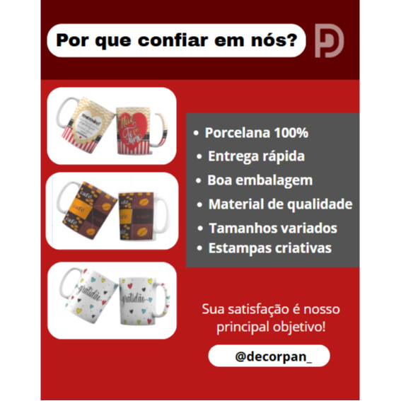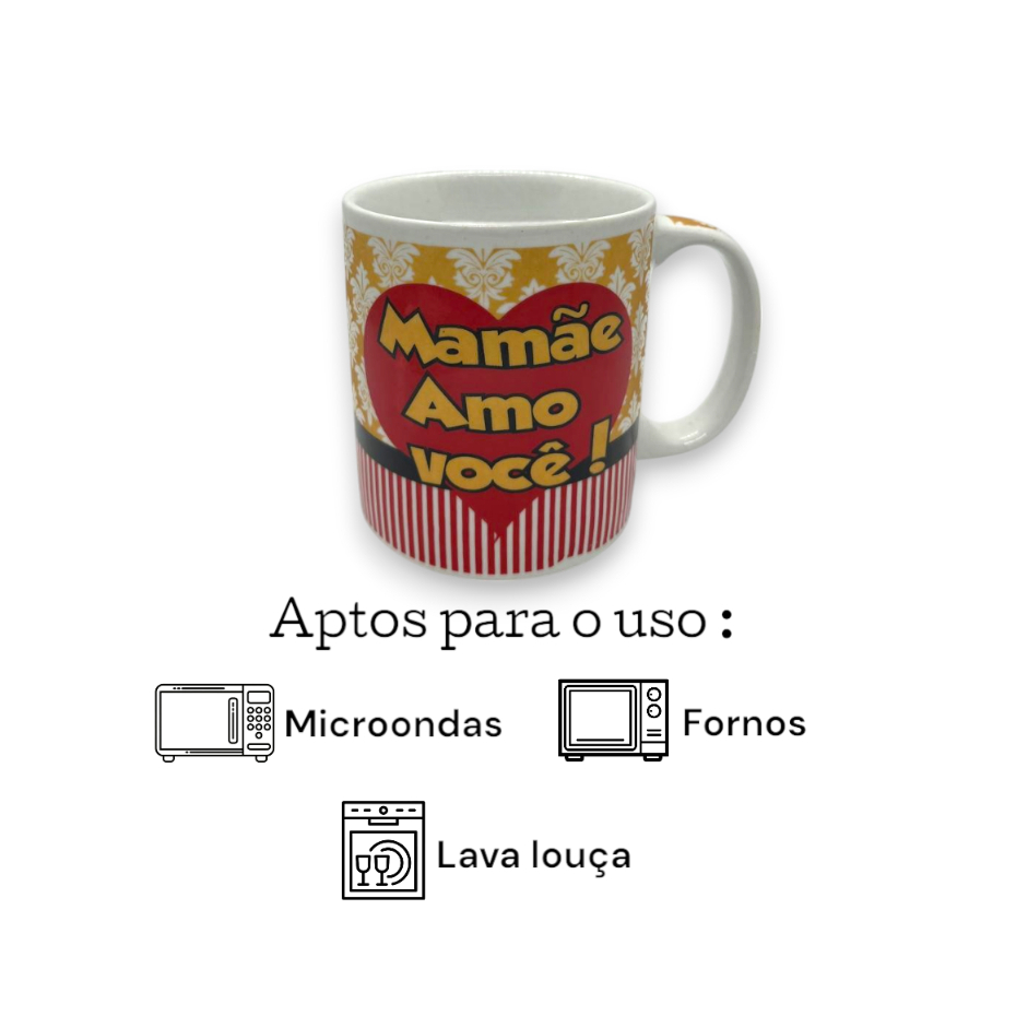 Kit 50 Canecas de Porcelana para Dia das Mães 300ml - Xicaras Grandes - Leite - Café - Presente Ideal