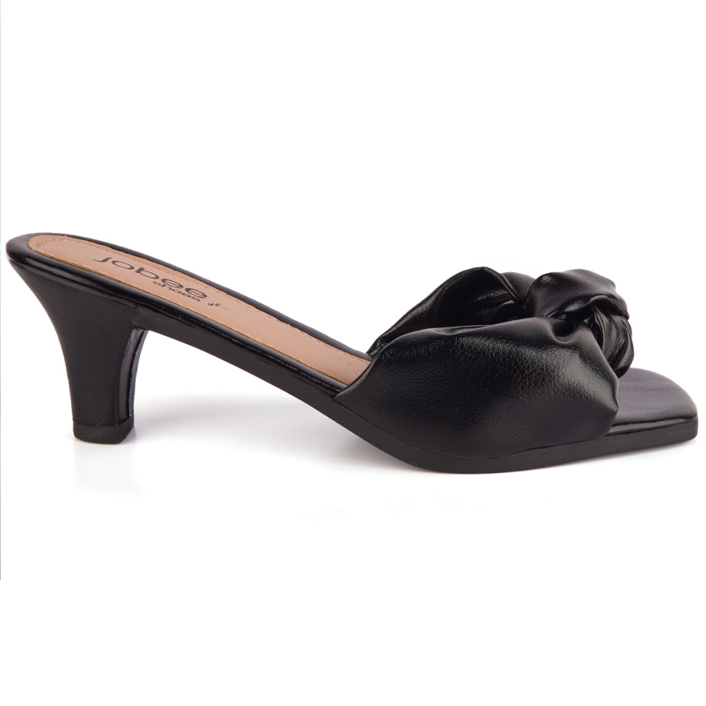 Tamanco Feminino Nó Salto Fino Baixo Bico Quadrado Social Sandália Confortável Casual Moda