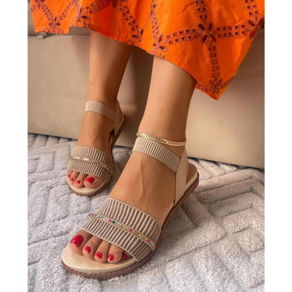 Sandalia rasteirinha elastico calce facil com strass pedras luxo confortavél papete presente natal ano novo