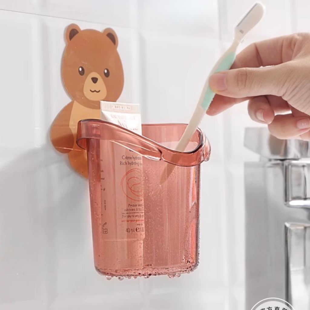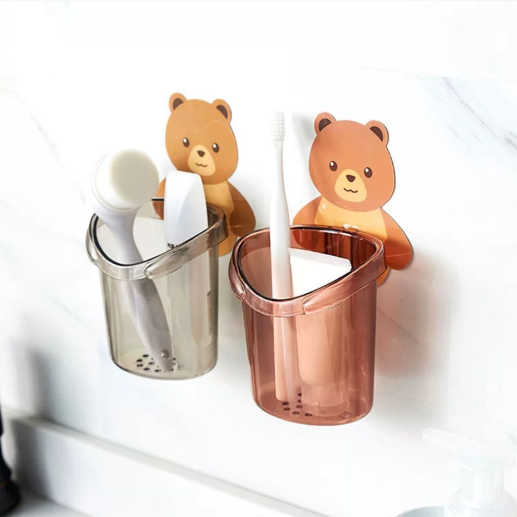 Suporte Porta Escova De Dentes Para Barbeador Banheiro Com Urso Adesivo