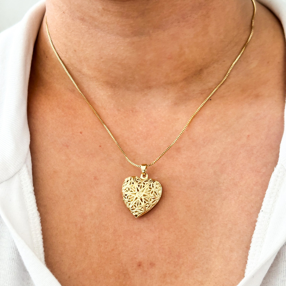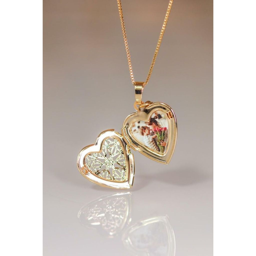 Colar Relicário Coração Banhado a Ouro Meu Lugar