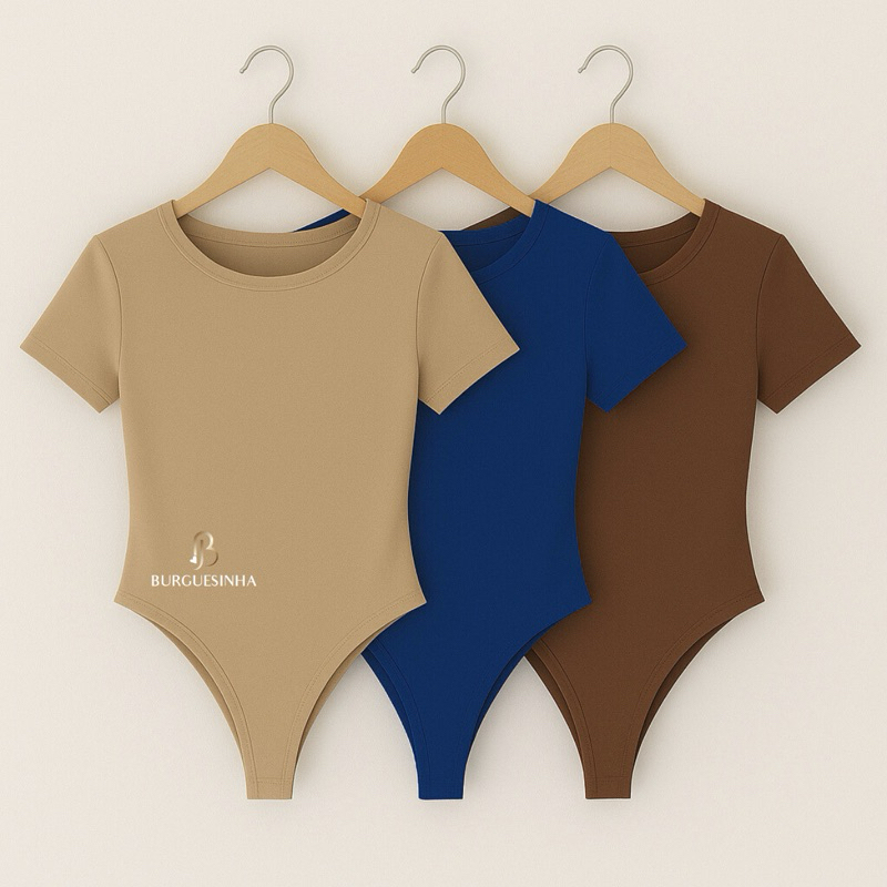 Kit 3 Body Feminino Manga Curta Suplex Duplo Premium Elegância E Conforto Para O Dia A Dia