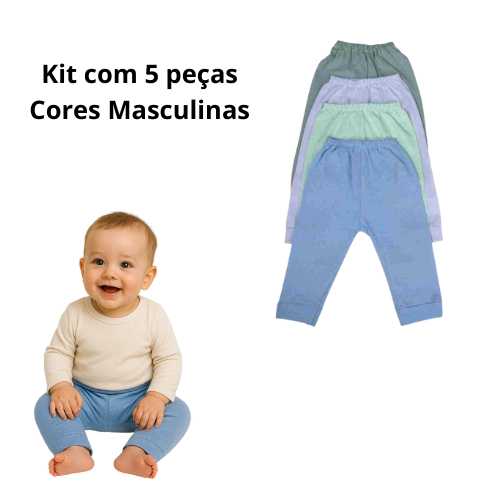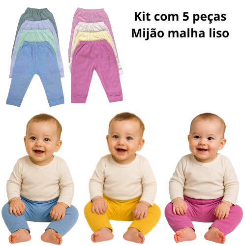 Kit 5 Mijão Calça de Malha Liso Infantil para Bebê Menino ou Menina 100% Algodao
