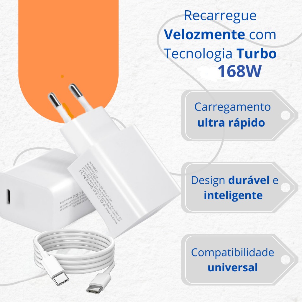 Carregador Turbo 168w Para Motorola Com Cabo Type C Todos MOTO G Super Rápido