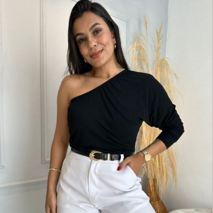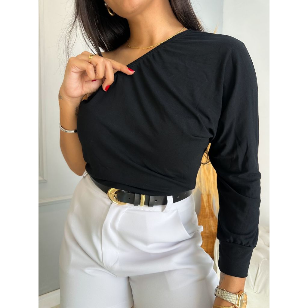 Blusa Feminina Elegante Um Ombro Só Blusinha Mula Manca Casual Estilosa