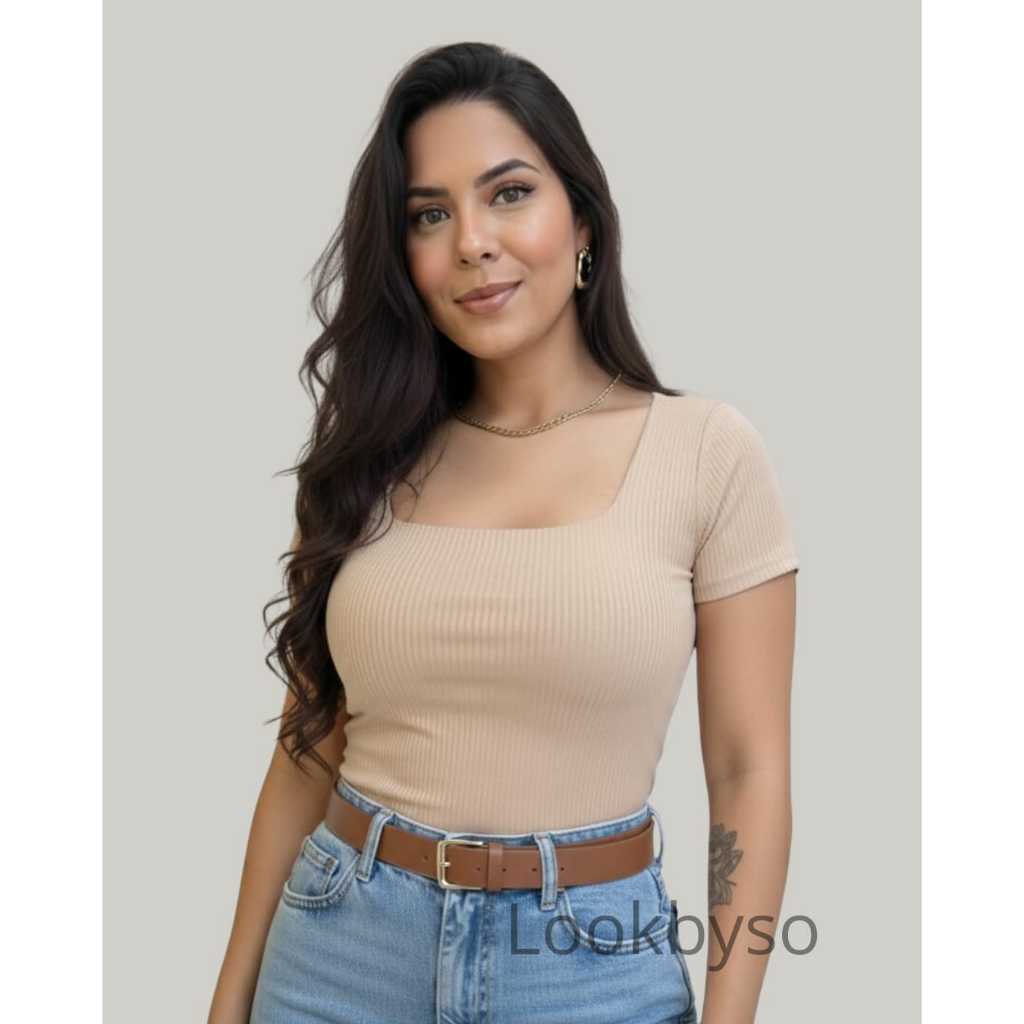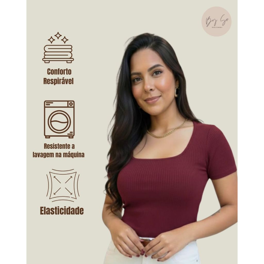 Blusa Feminina Canelada Premium Decote Quadrado Manga Curta – Elegância e Conforto para o Dia a Dia