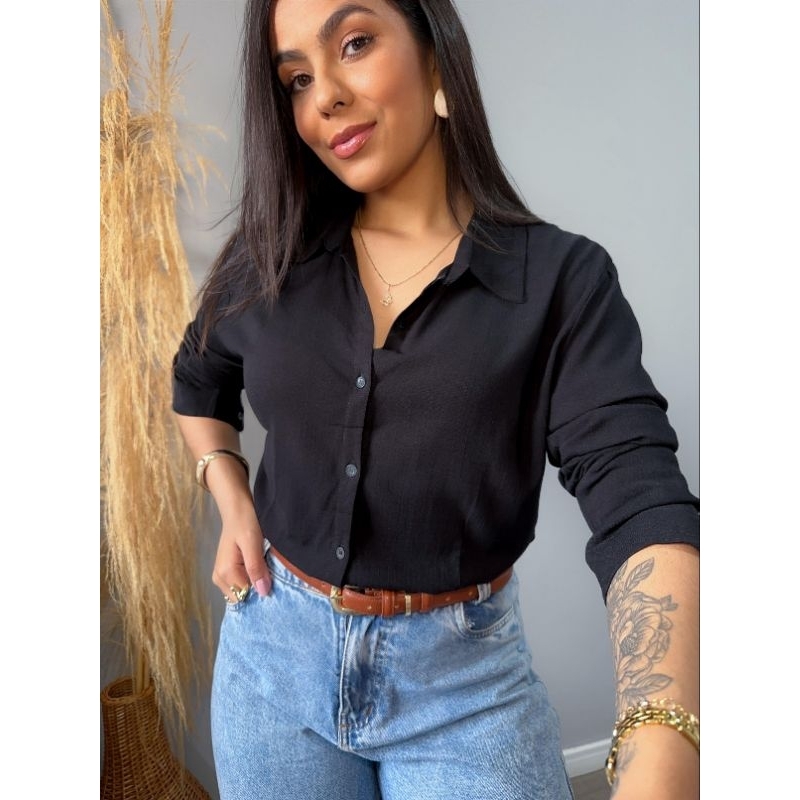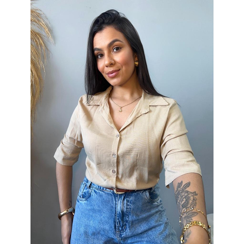 Camisa Feminina Social Viscolinho SEM BOLSO Manga Longa Toque Macio Modelo Slim Camisete Elegante Casual