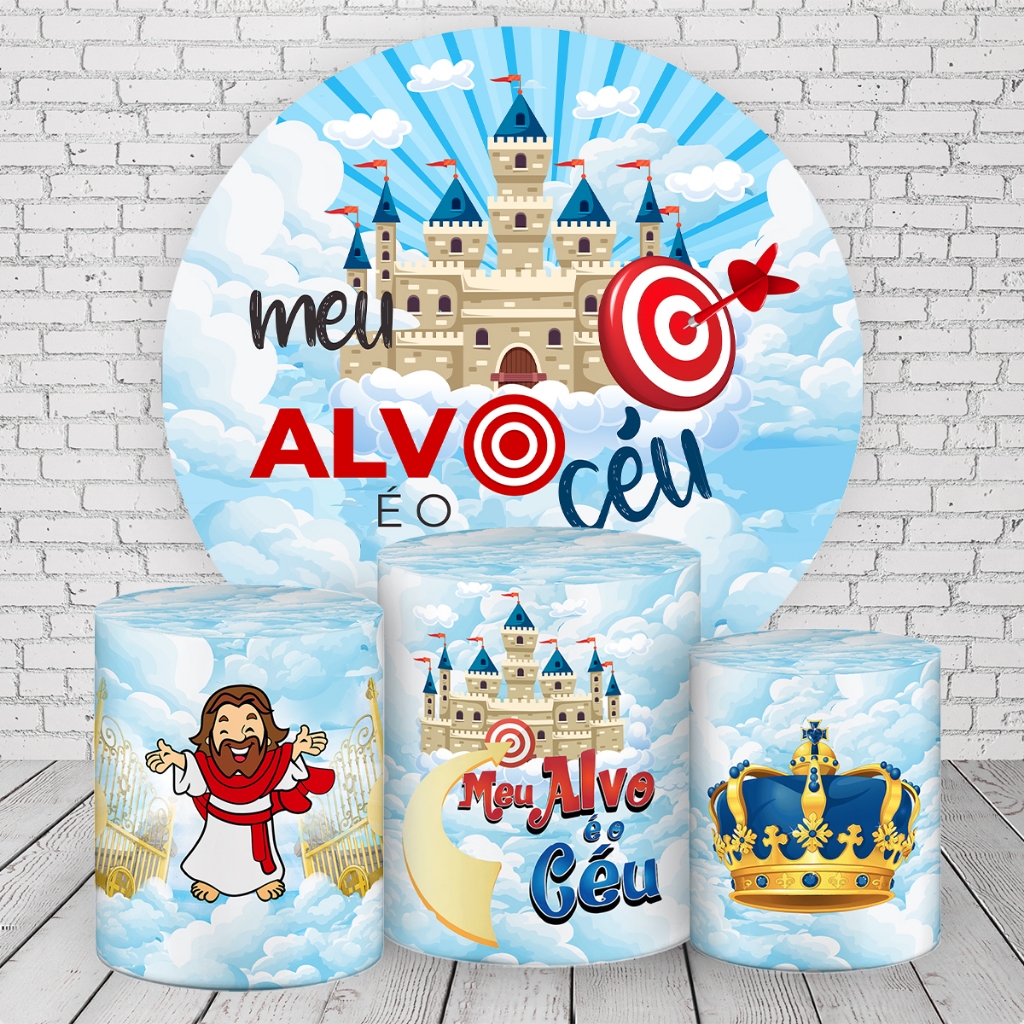 Kit Painel Redondo 1,5m + 3 Capas De Cilindro C/ Elástico Em Tecido Meu Alvo é o Céu SKP-287