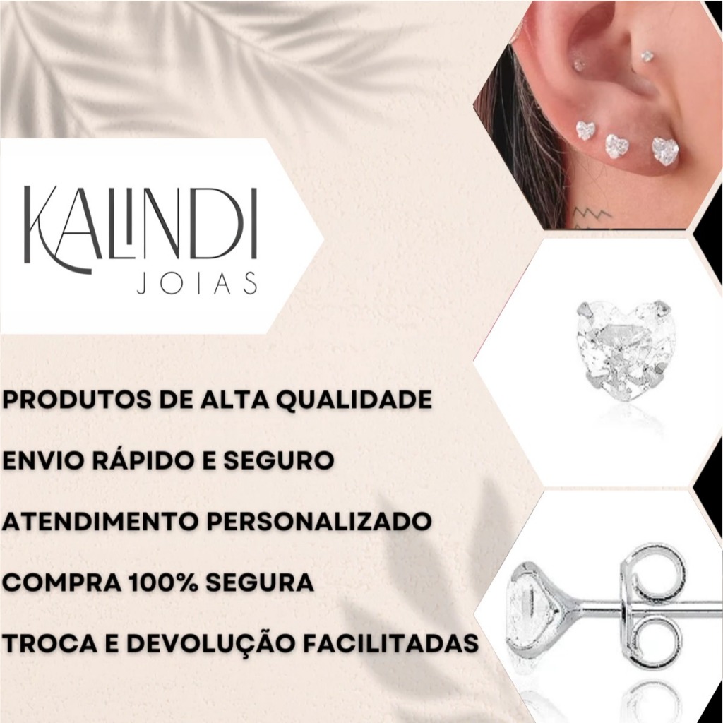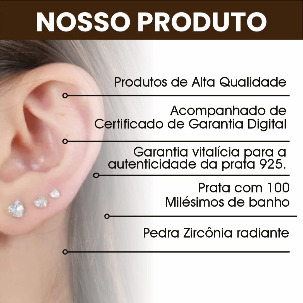 Kit Trio Brinco Ponto de Luz - Coração Zircônia Prata 925 4mm 5mm 6mm