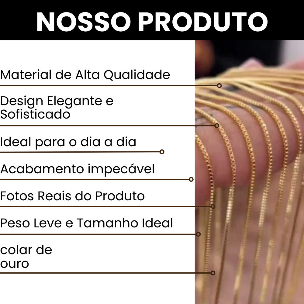 Corrente Veneziana V12 Banhada a Ouro 18K Unissex 40cm a 70cm Colar Fino Elegante