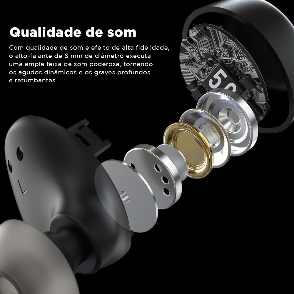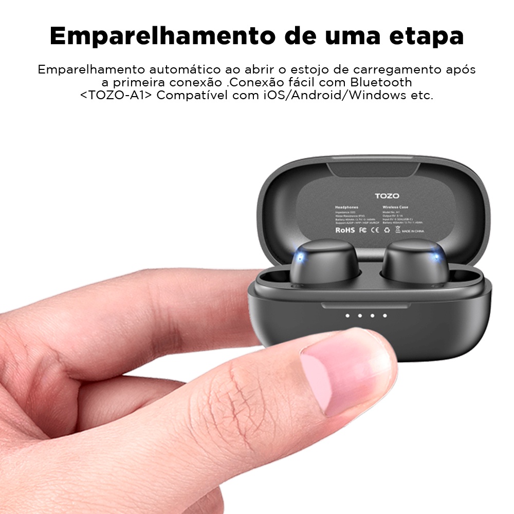 Fone de Ouvido In-Ear Sem Fio Tozo A1 Bluetooth 5.3 Preto