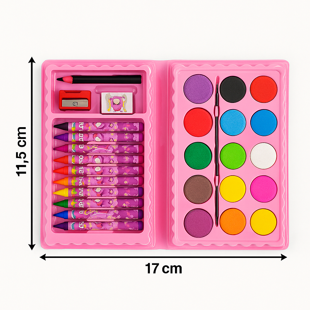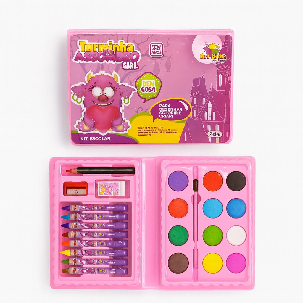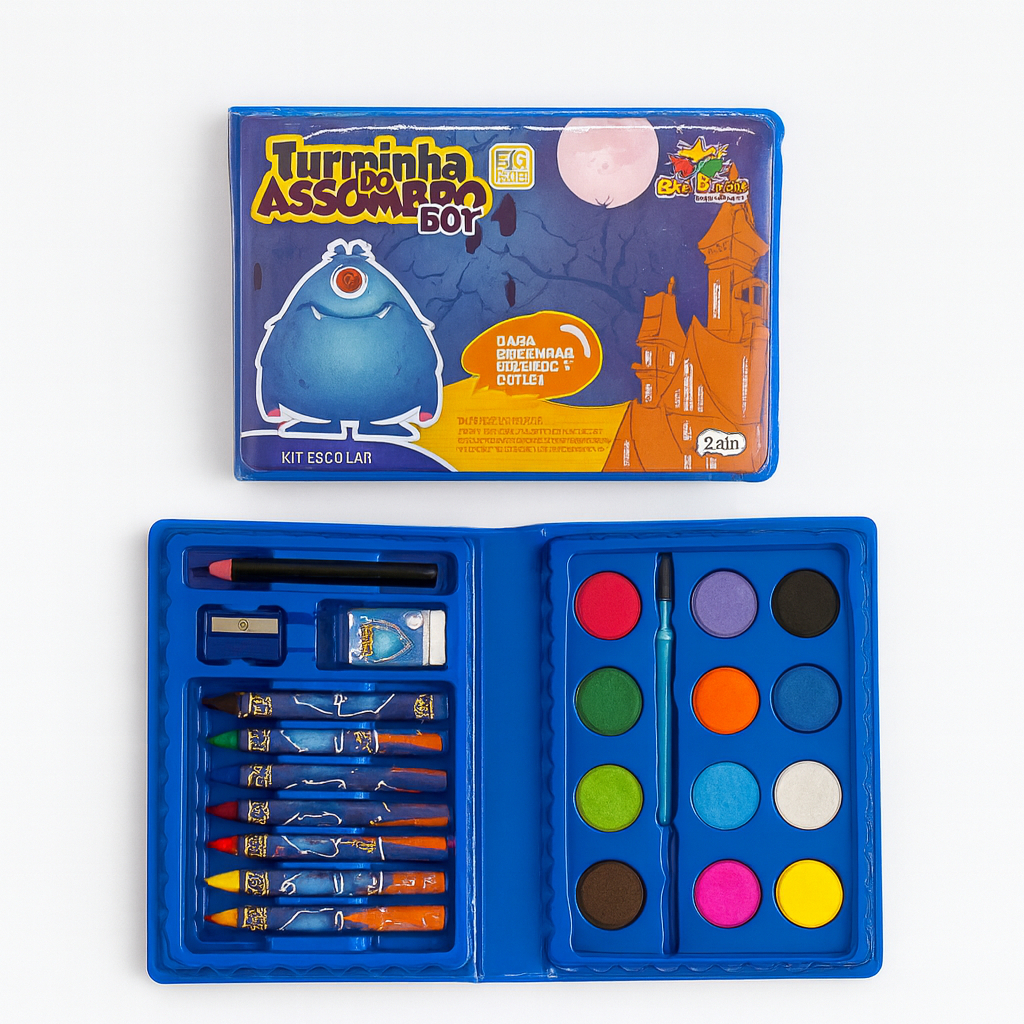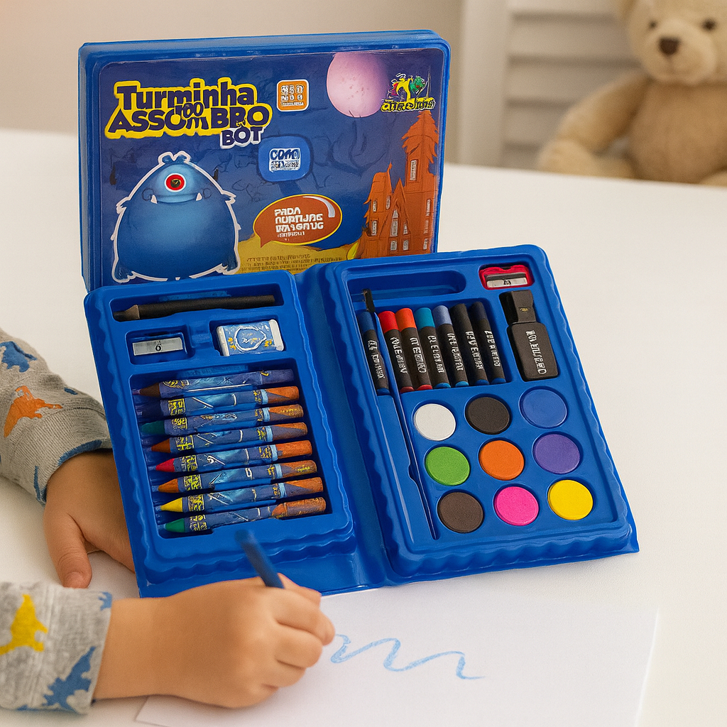 Kit 42/13 Peças Maleta Pintura Infantil Pincel Giz Aquarela Apontador Lápis Estojo Desenho Criança