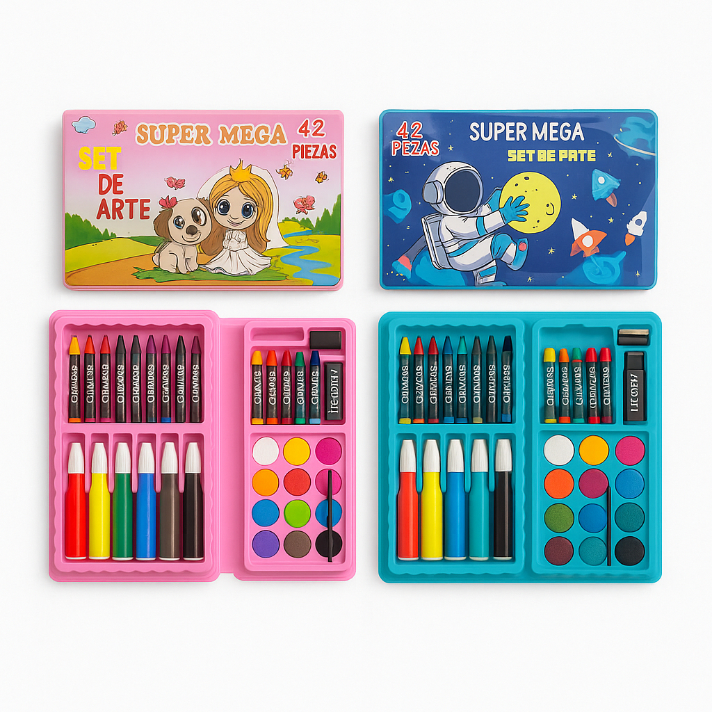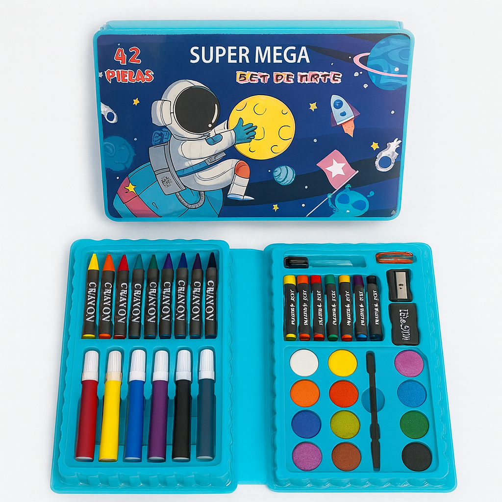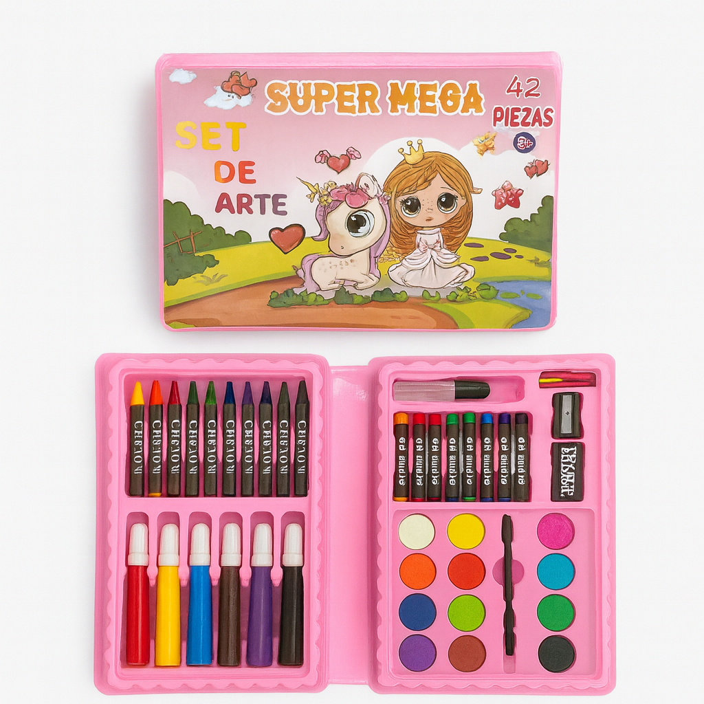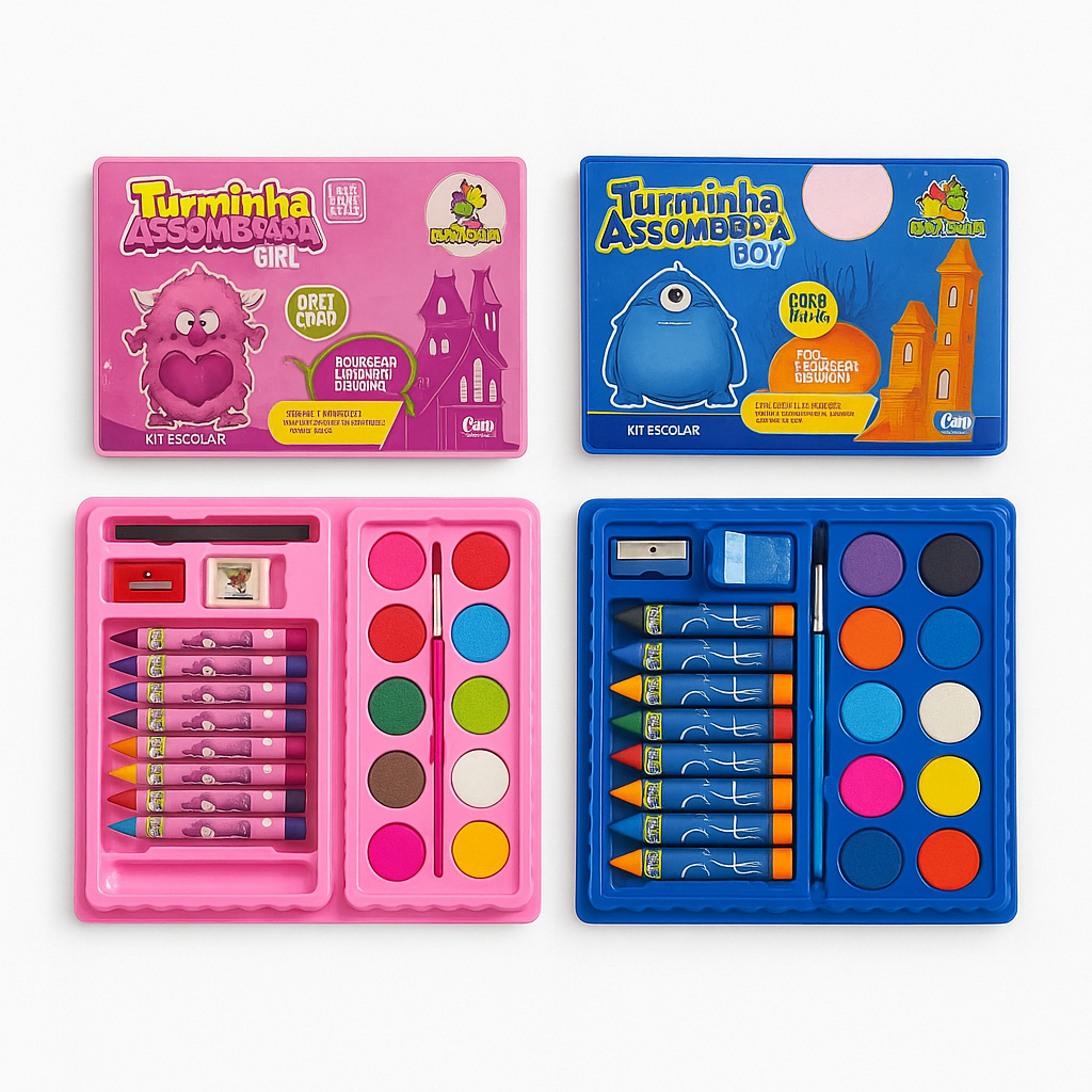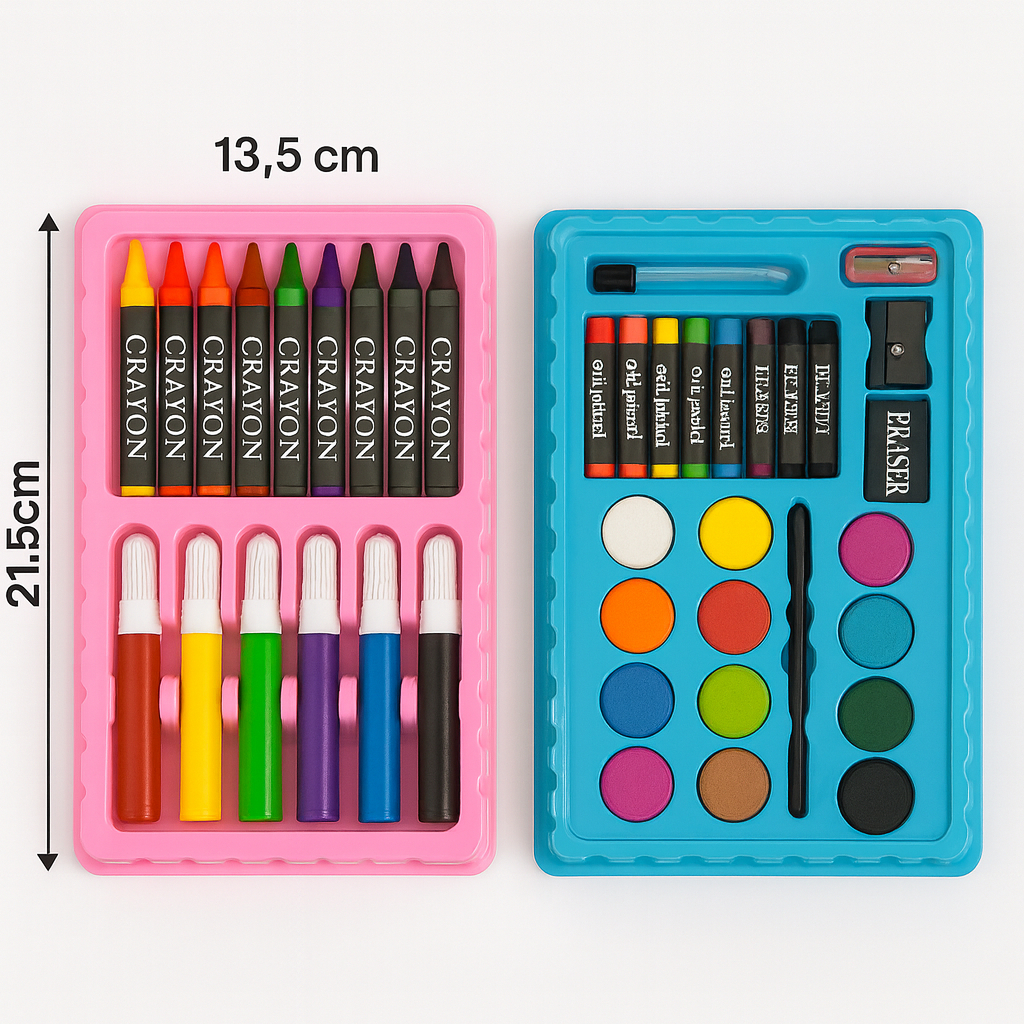Kit 42/13 Peças Maleta Pintura Infantil Pincel Giz Aquarela Apontador Lápis Estojo Desenho Criança