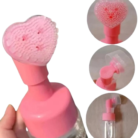 Pump Espumador Rosa Com Escova De Silicone Formato De Coração Para Limpeza Facial 100ML