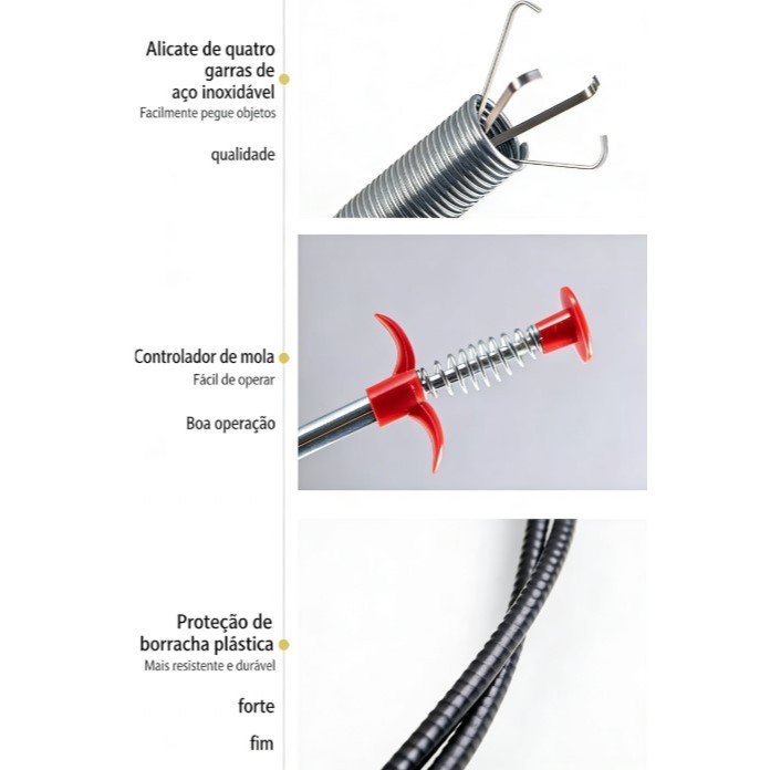 Desentupidor Flexível 1,60m com Garras Pinça – Limpador para Ralos, Pias e Canos