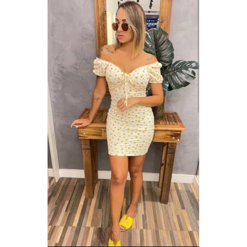 Vestido xadrez Floral Com Lycra estampado ombro a ombro Ciganinha Tubinho Floral