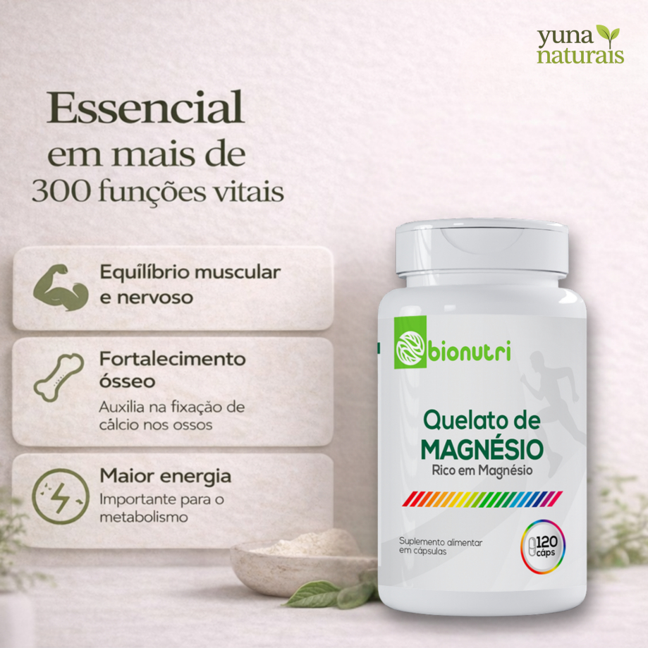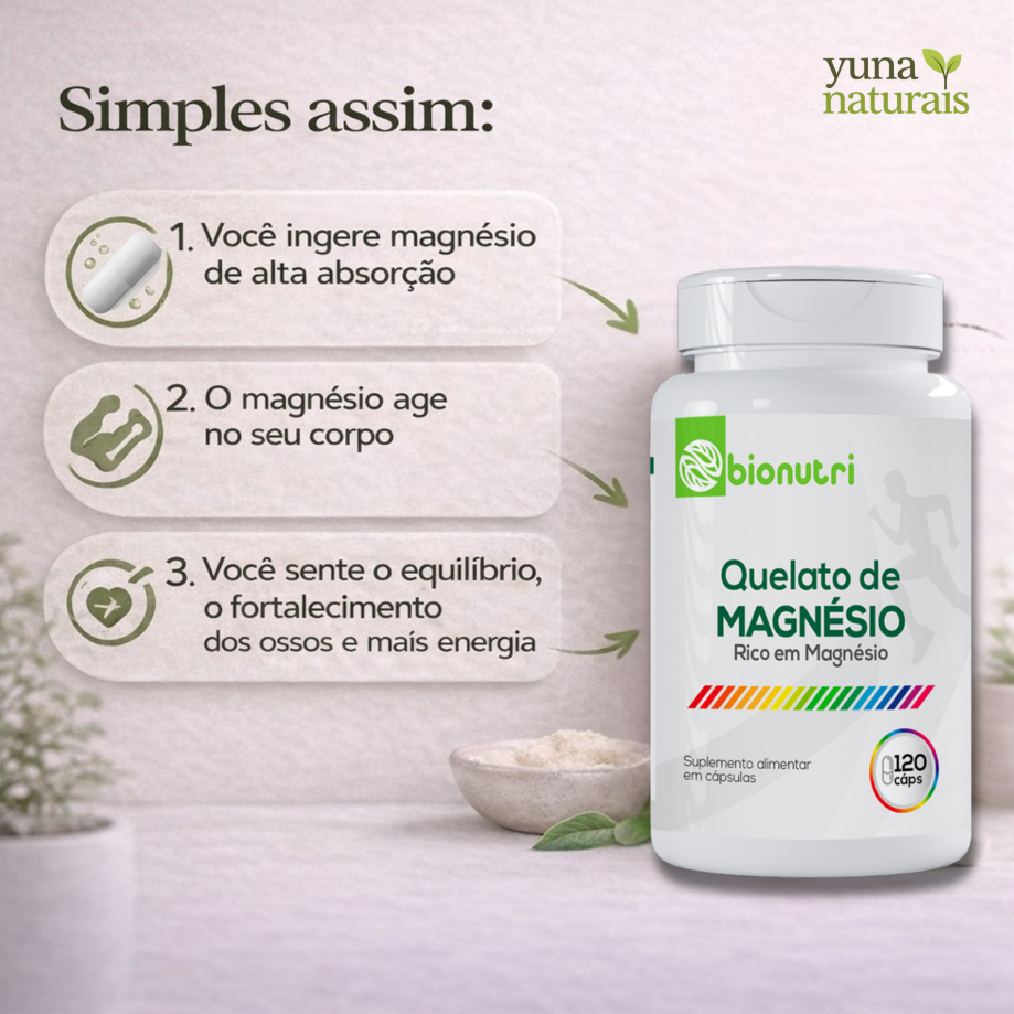 Quelato de Magnésio 120 ou 60 Cápsulas Bionutri Original Suplemento Alimentar Rico em Magnesio Quelato