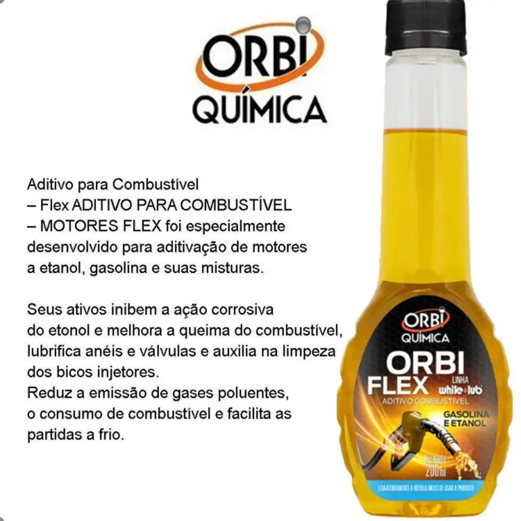 Kit 2 Aditivo de Combustível Orbi Flex Gasolina Etanol Limpa Motor Economia Carro Moto 200ml
