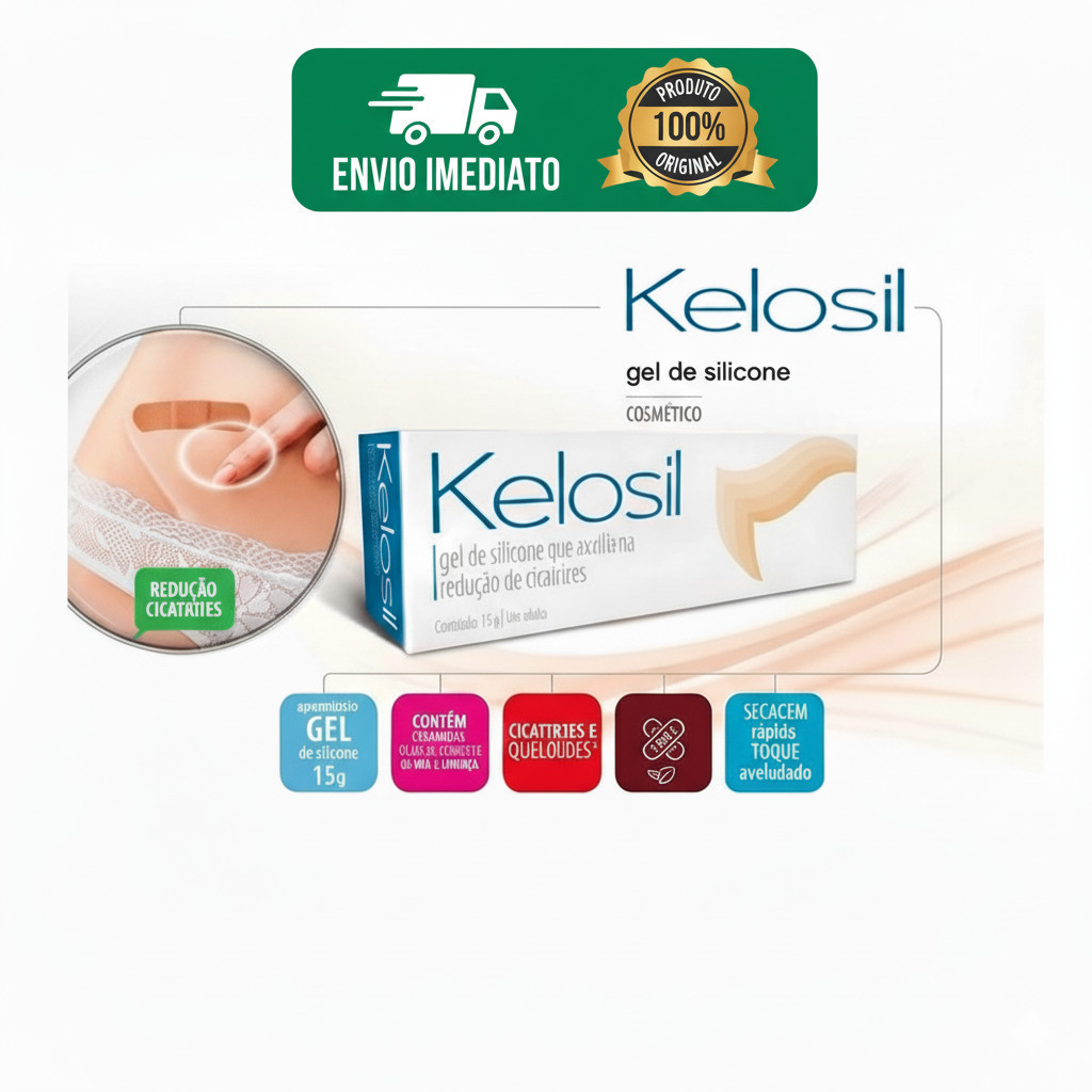 Kit 2 ou 3 Unds Gel Silicone Kelosil Original Redução Cicatriz e Queloide Pós Cirurgia Secagem Rápida ( Kit ou Unidade )