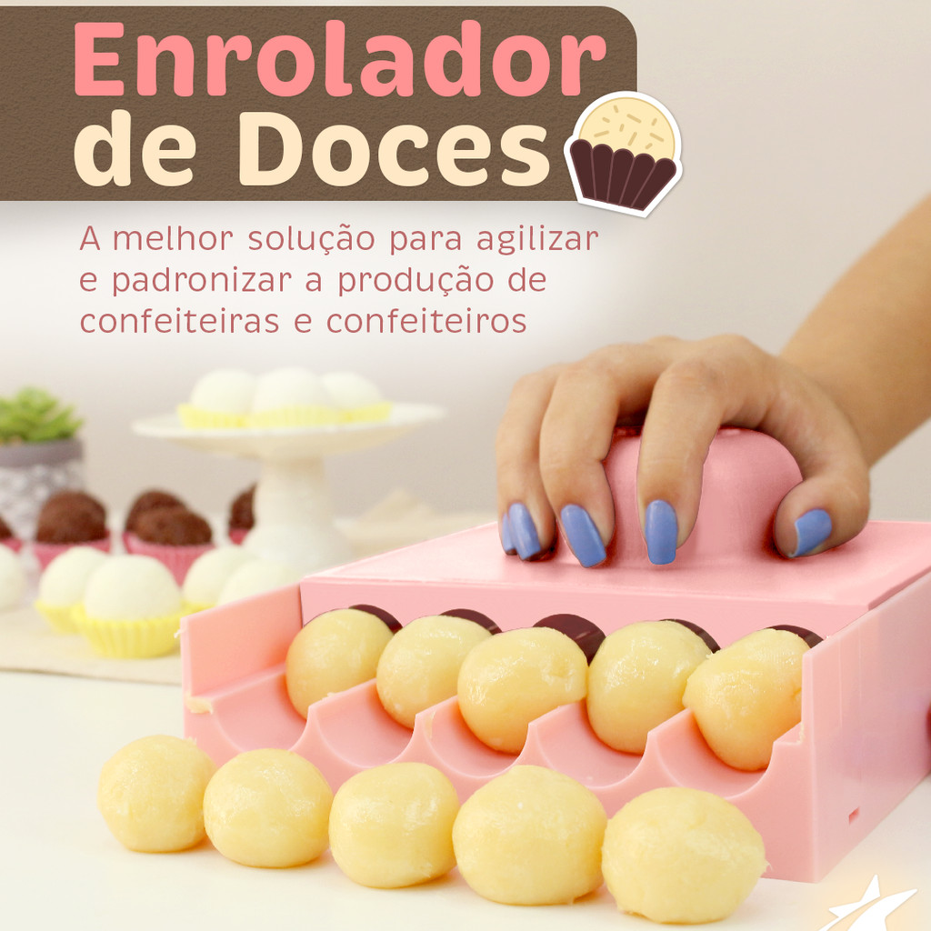 Enrolador de Doces Confeitaria Encomendas Brigadeiro Docinhos Festa Aniversário Blue Star Rosa