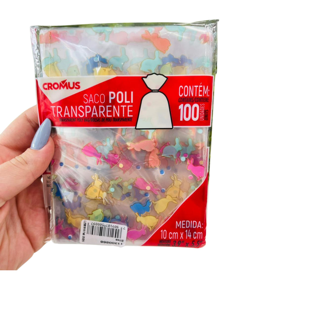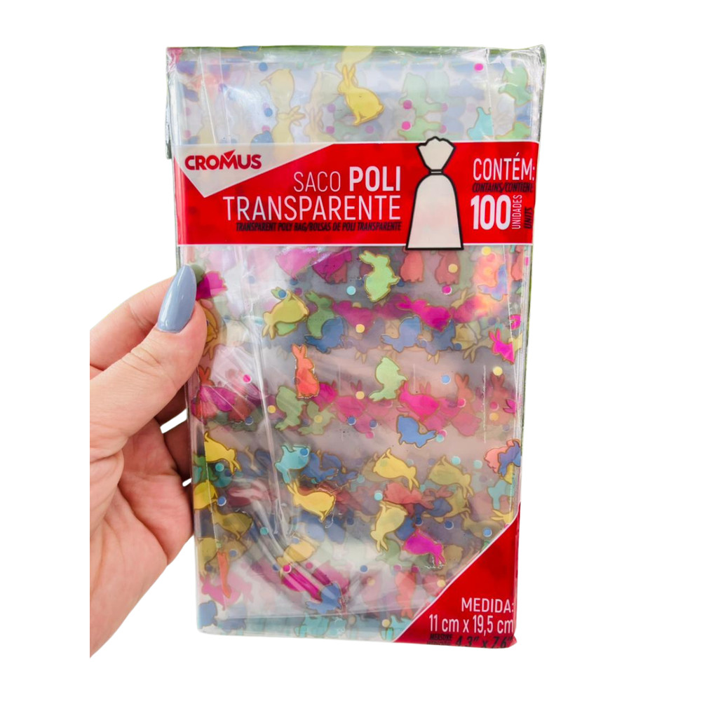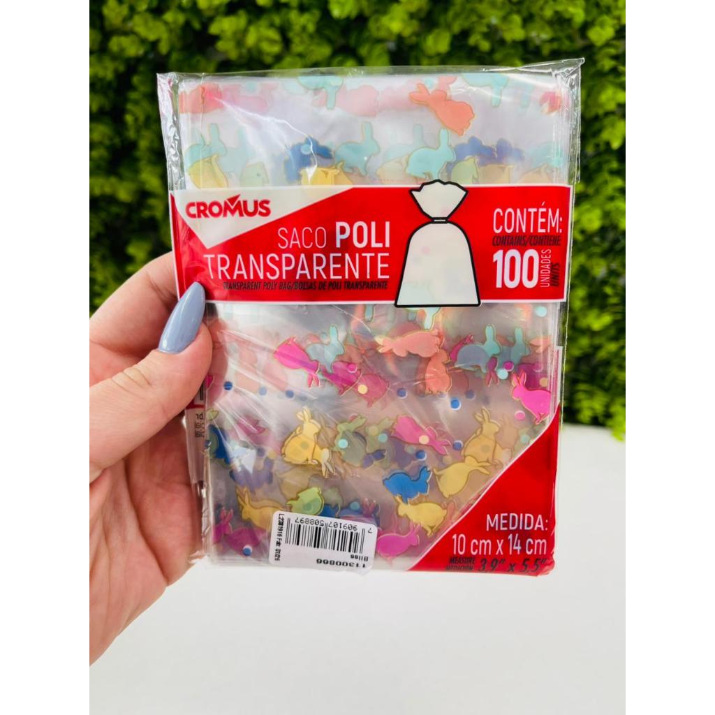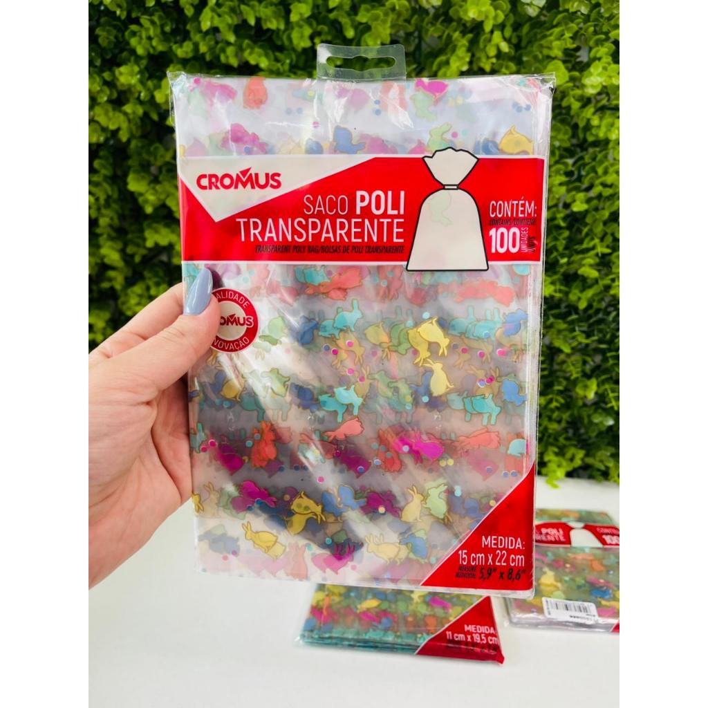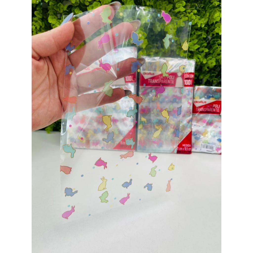 100 Sacos Transparente Coelhinho Páscoa Colorido Bliss Pirulito de Chocolate Trufas Cromus 11300866