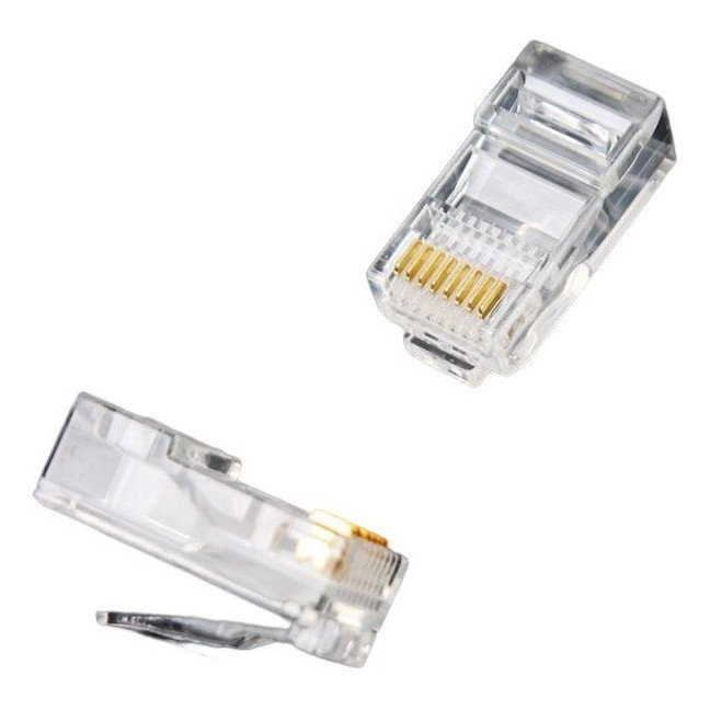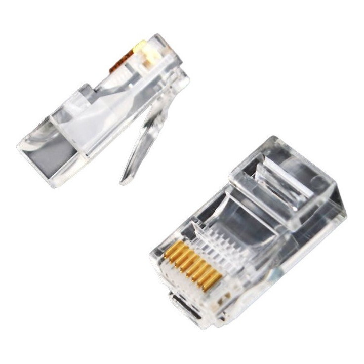 Kit 100 Conector Rj45 Cat5e Banho De Ouro Cabo De Rede 100