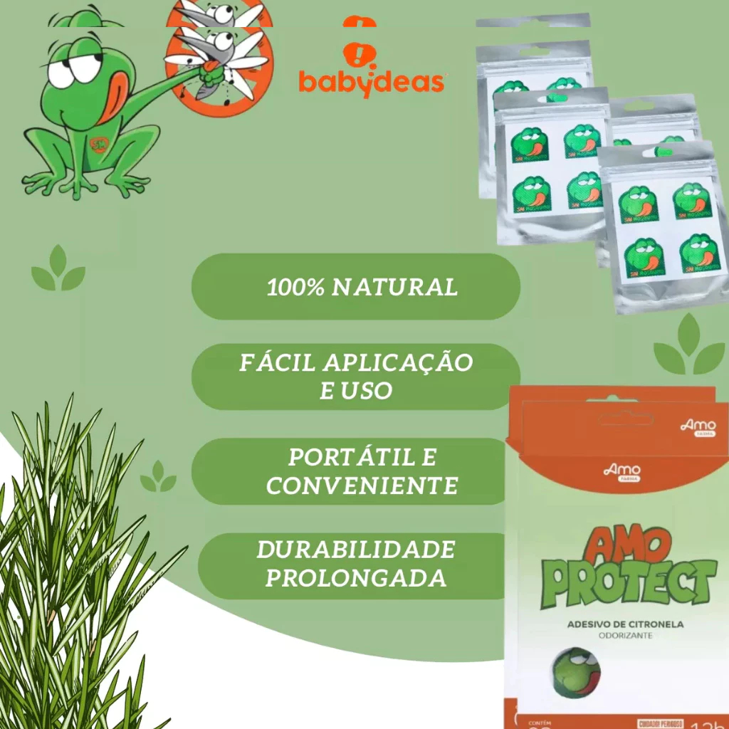 KIt com 02 Repelente infantil Adesivos Amo Protect Sai Mosquito Citronela