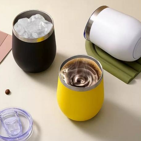 Kit 2 Copo Ovo Cuia Térmica Oval 360ml Em Inox Com Tampa Acrílica Envio Imediato