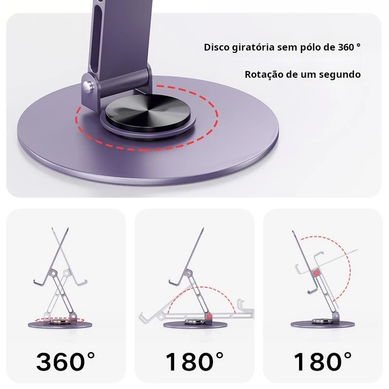 Suporte Alumínio de Mesa Base Rotatória Ajustável 360º Para Smartphones e Tablets