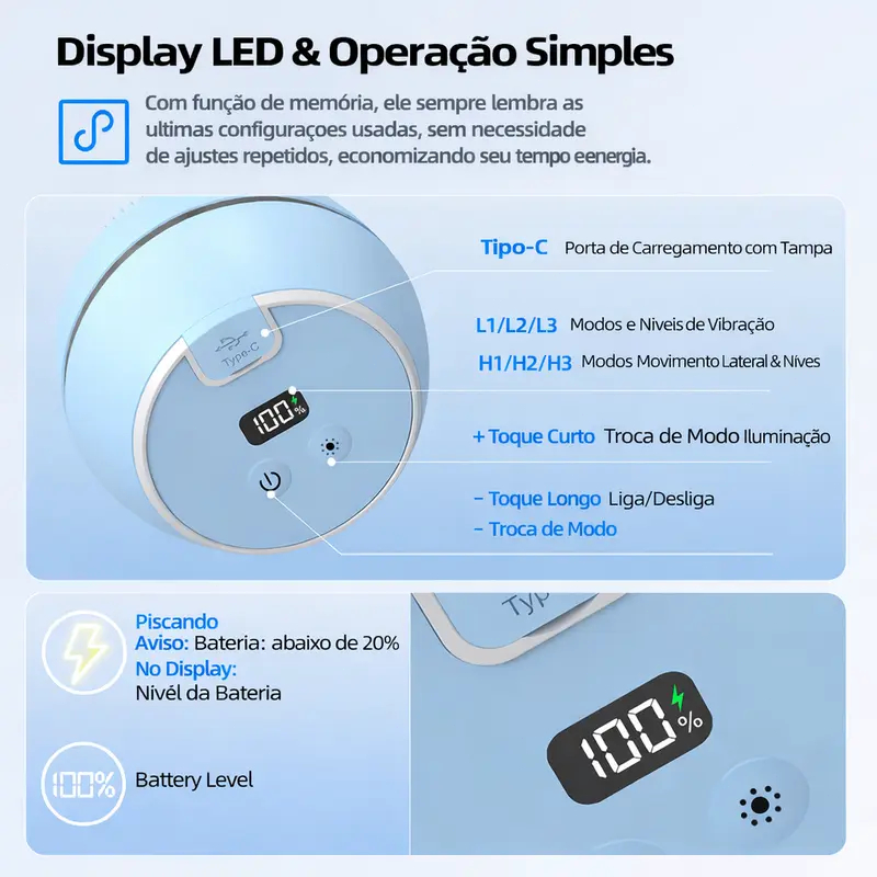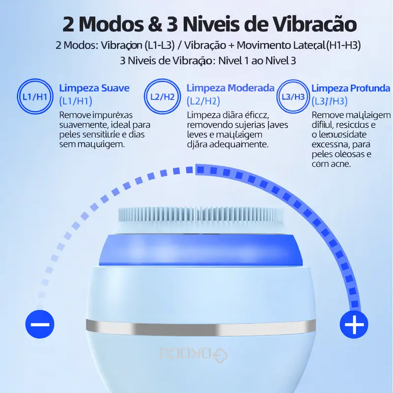 GOKOCO Escova de limpeza facial elétrica portátil aquiagem Vibracao Sonica Modo Pulso Luz de Beleza LED Display Digital