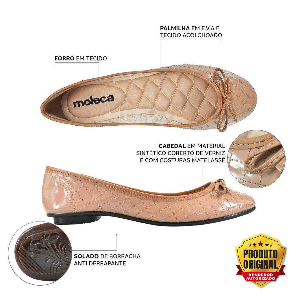 Sapatilha Moleca Losango Bico Redondo Laço Verniz Nude Feminino Confortável