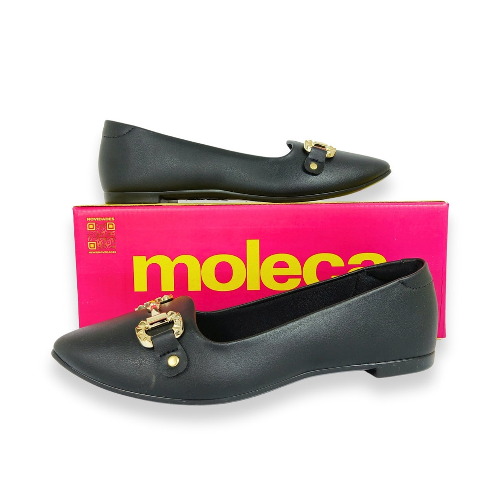 Sapatilha Moleca Feminina Preta Detalhe Dourado Casual