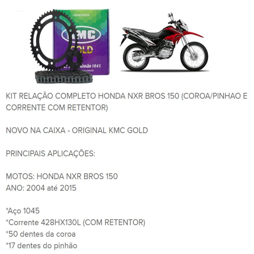Kit Relacao Tracao Transmissao Honda Nxr Bros 150 2004 2005 2006 07 08 09 10 11 12 13 14 2015 Com Retentor Original Kmc