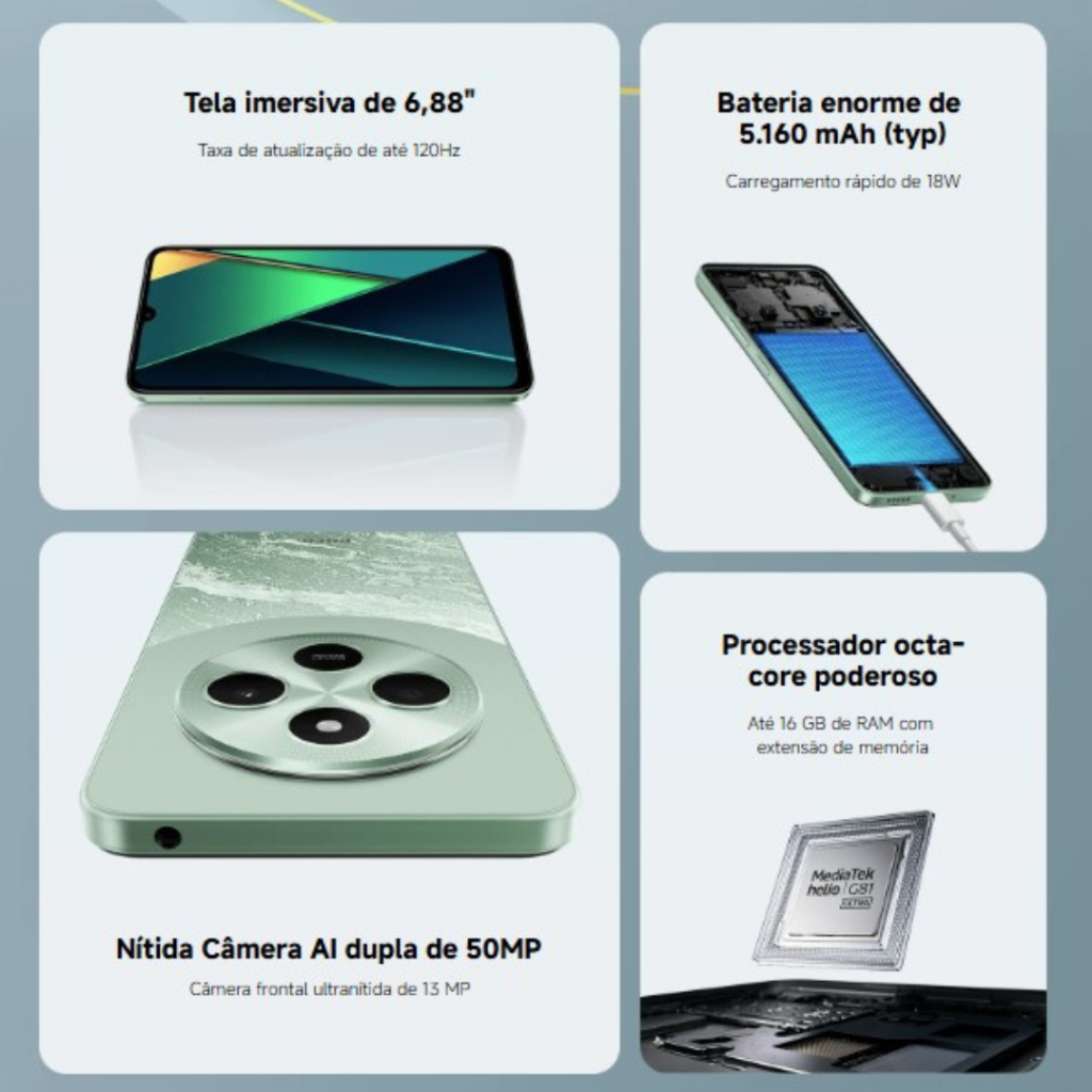 Xiaomi Poco C75 4G, 128GB/6GB RAM-256GB/8GB RAM, Câmera 50MP, Processador Mediatek Helio G85, VERSÃO GLOBAL, LACRADO