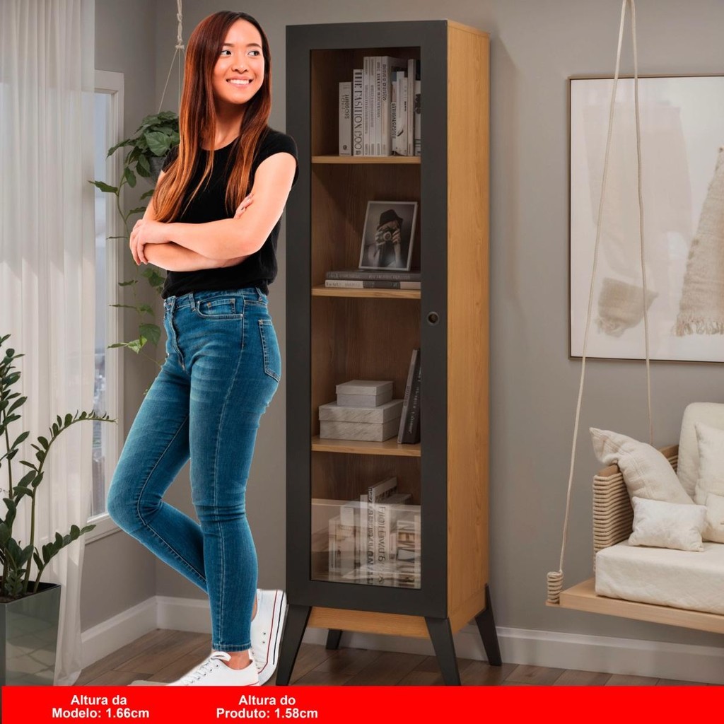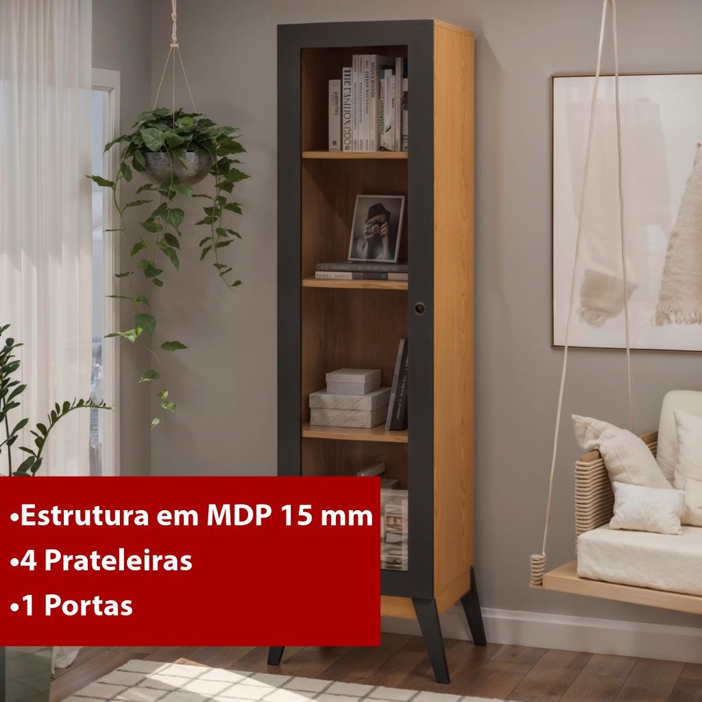 Estante Livros Genialflex Malta 1 Pt de Vidro Preto Cinamomo