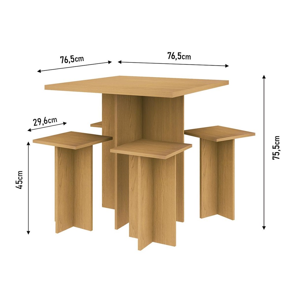 Mesa De Jantar Genialflex Kit 4 Bancos Carvalho Dakar