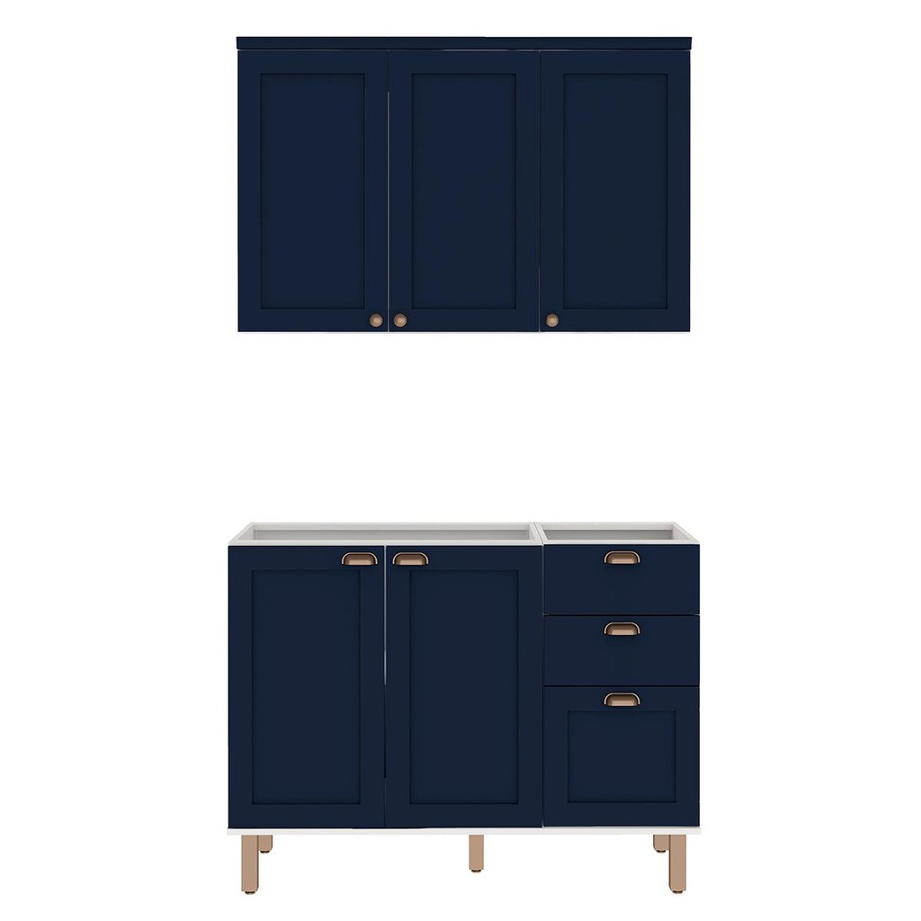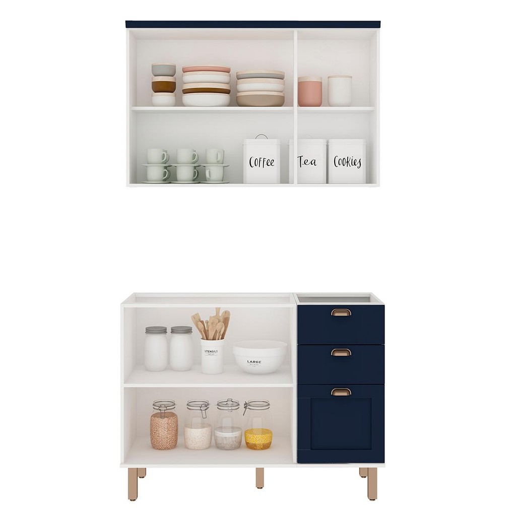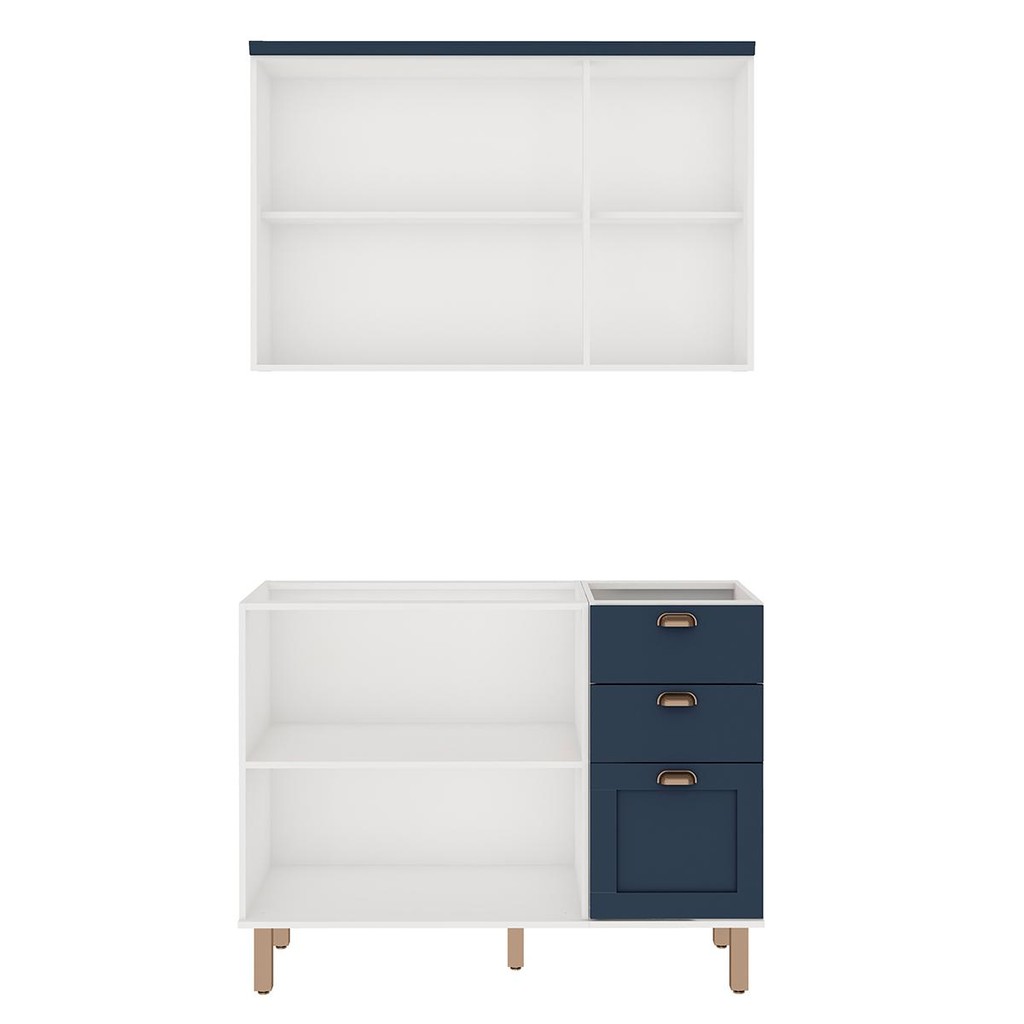 Armário de Cozinha Genialflex 2 Peças Sem Tampo Branco Azul