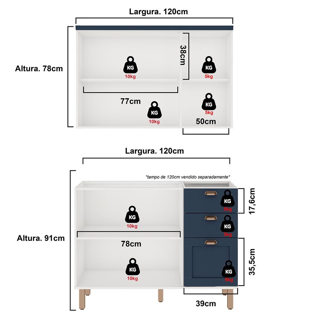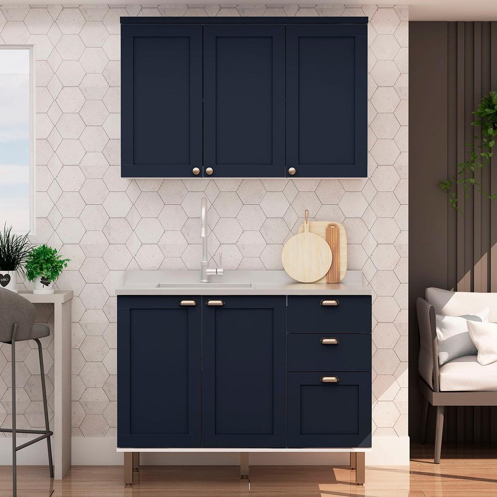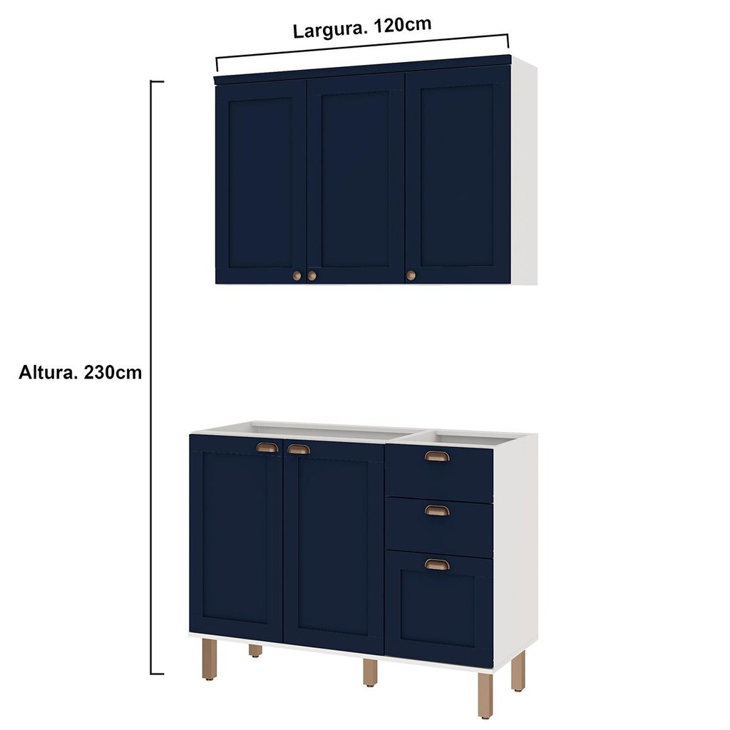 Armário de Cozinha Genialflex 2 Peças Sem Tampo Branco Azul