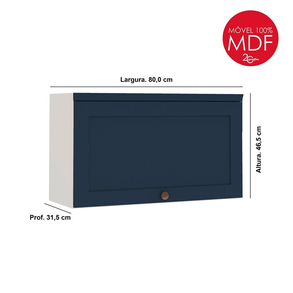Armário de Cozinha Genialflex Iluminata 1 Pt 80 Cm Bco Azul