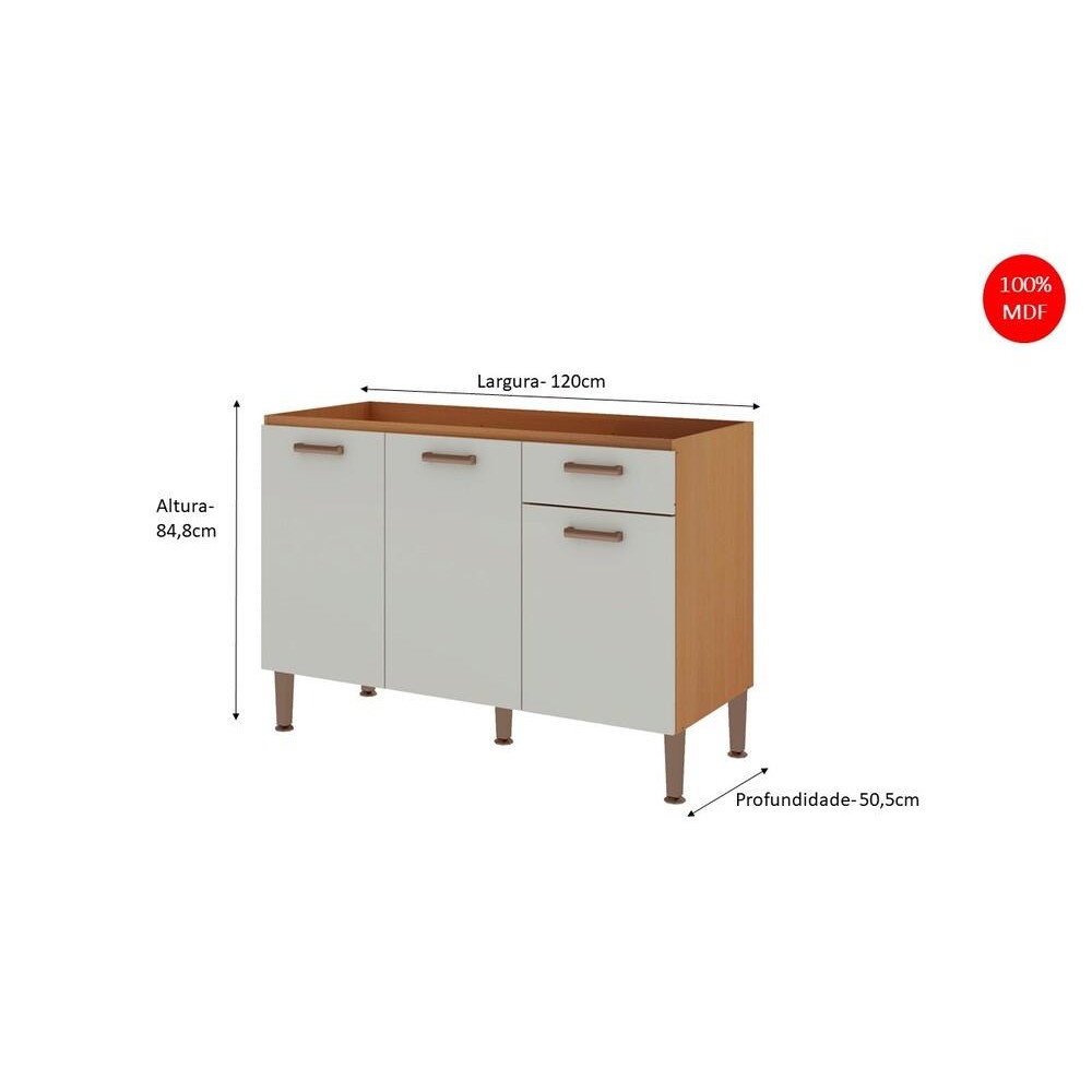 Balcão para Cozinha Freijó White Laca Brilho