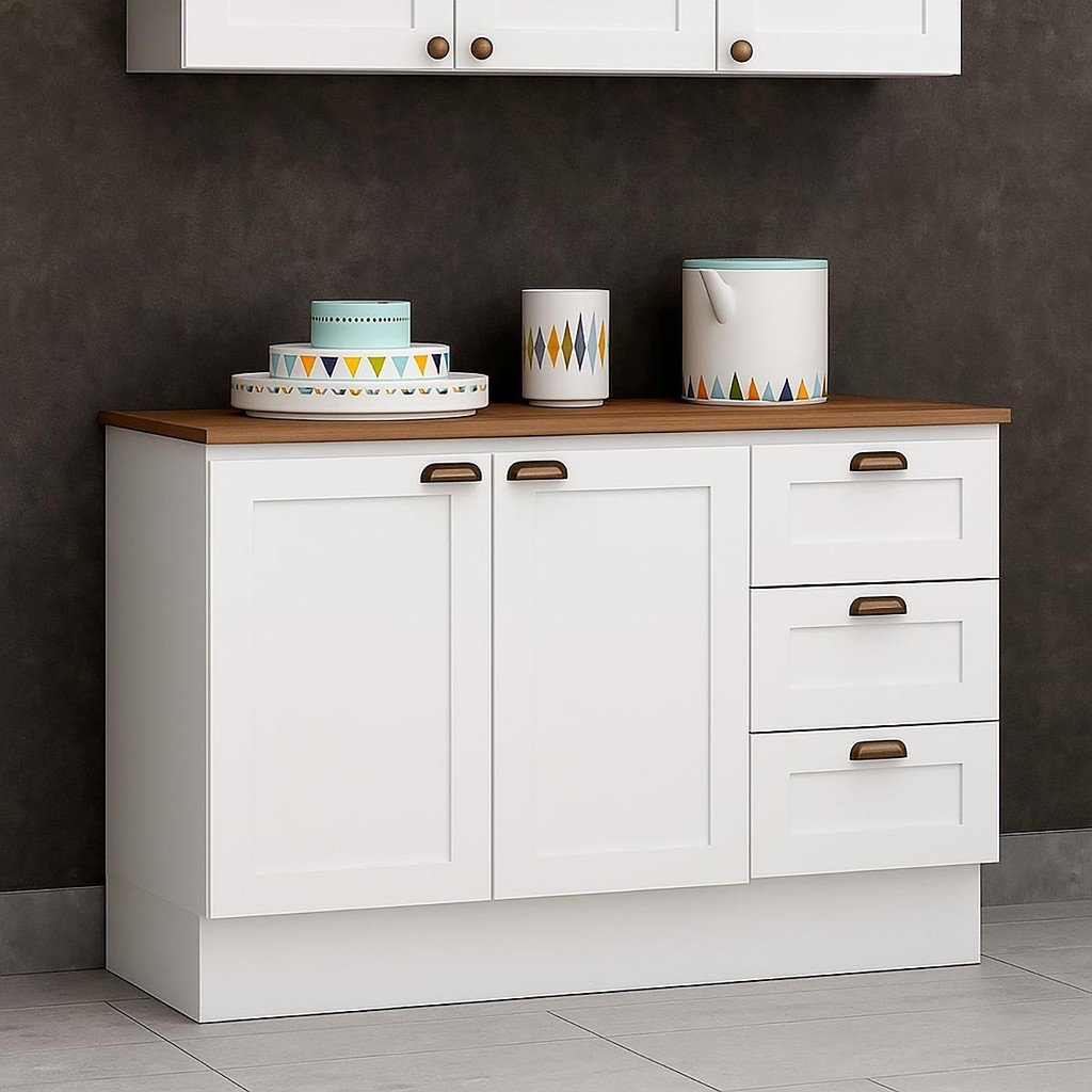 Balcão Cozinha Genialflex Provençal Branco Com Tampo Ébano
