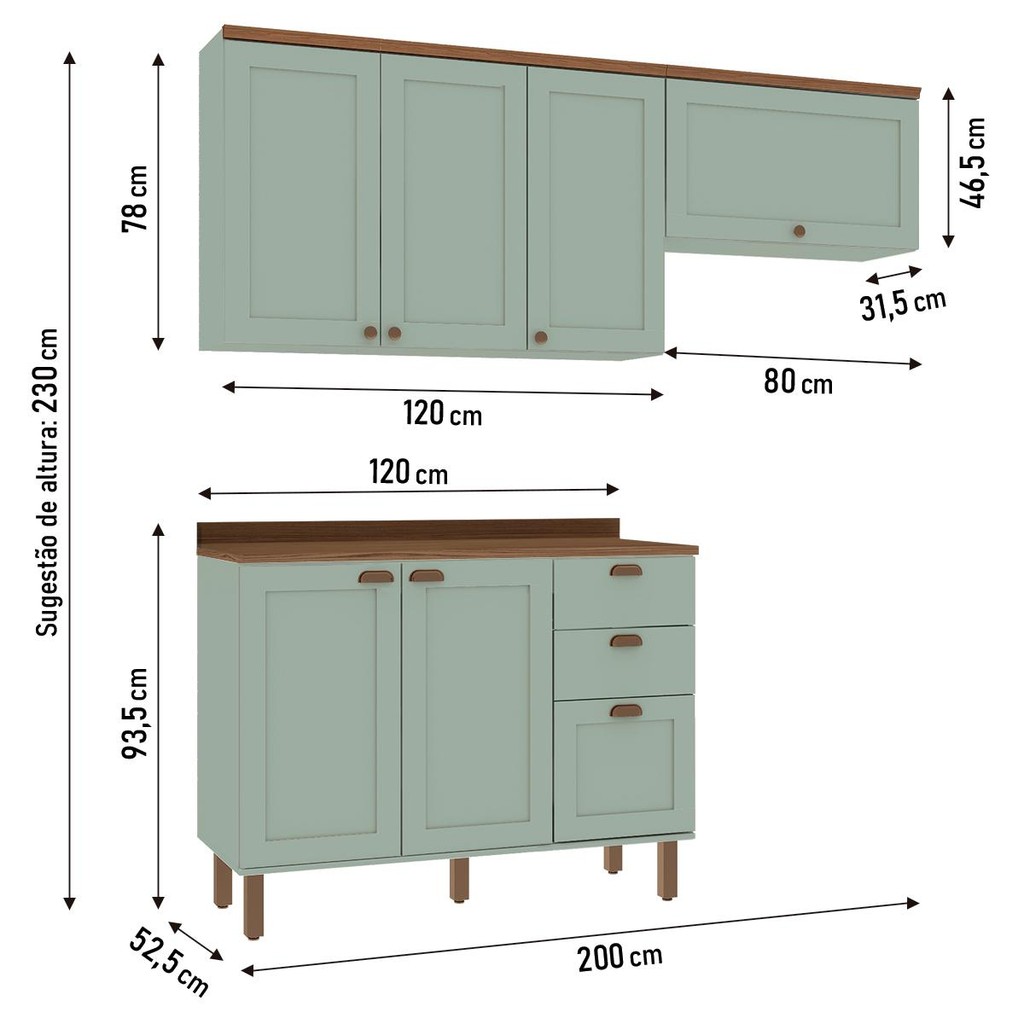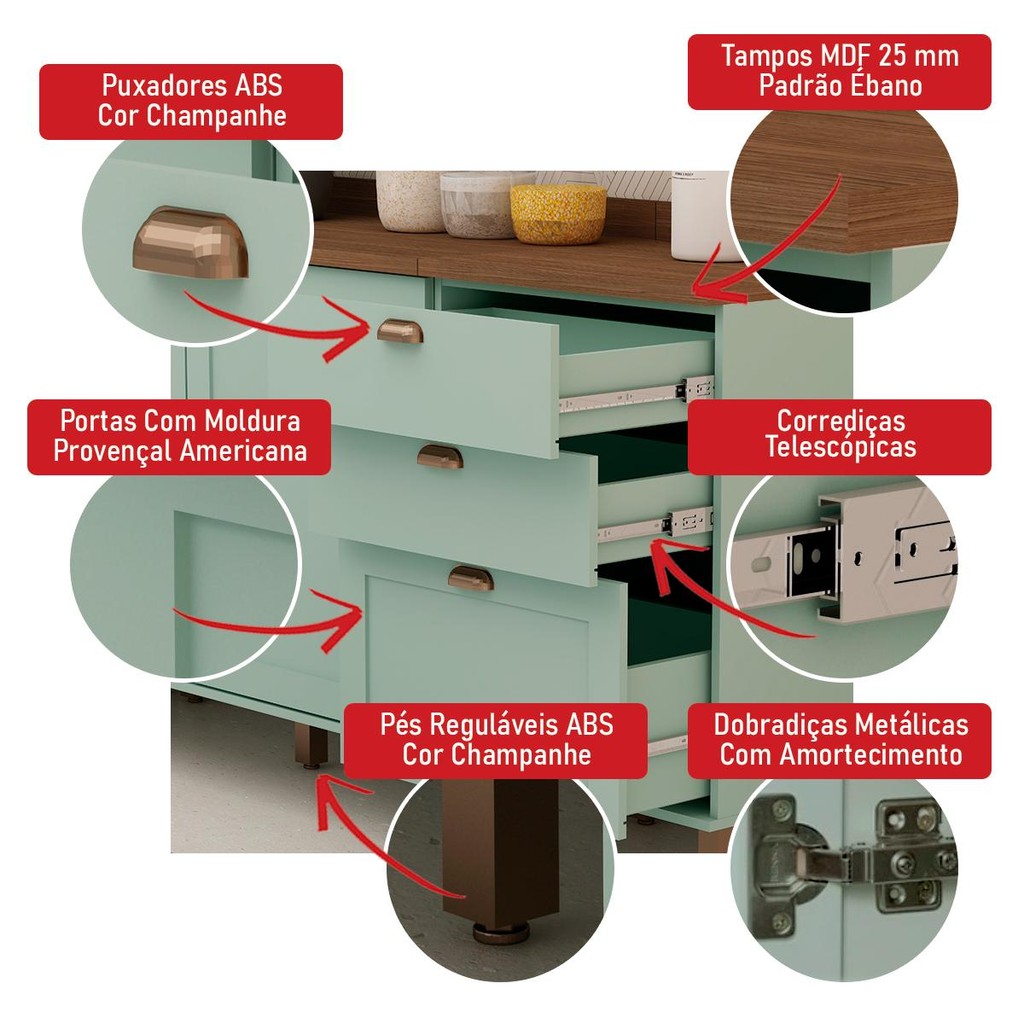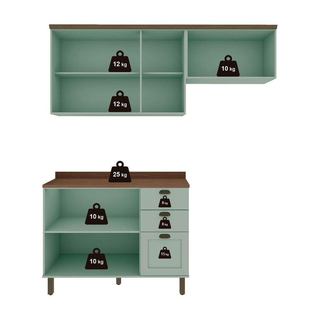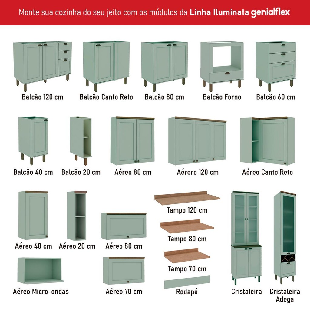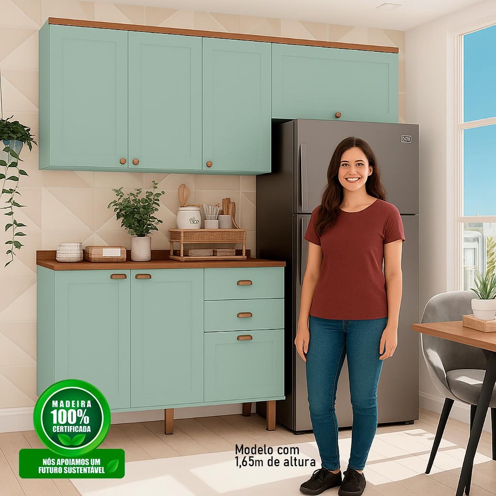 Armário De Cozinha Genialflex Iluminata Flora Verde Mint