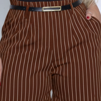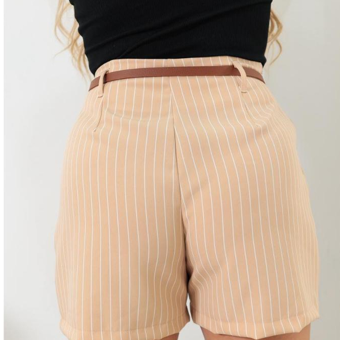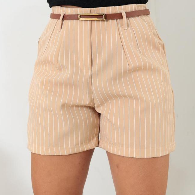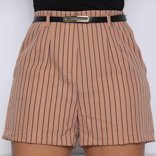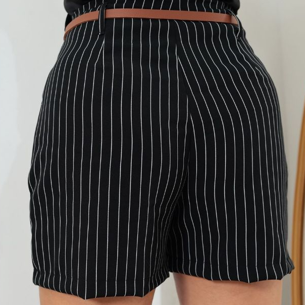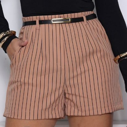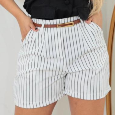 Short Alfaiataria feminino social Listrado com cinto, bolso e zíper na lateral verão 2025